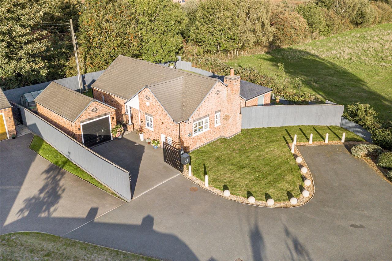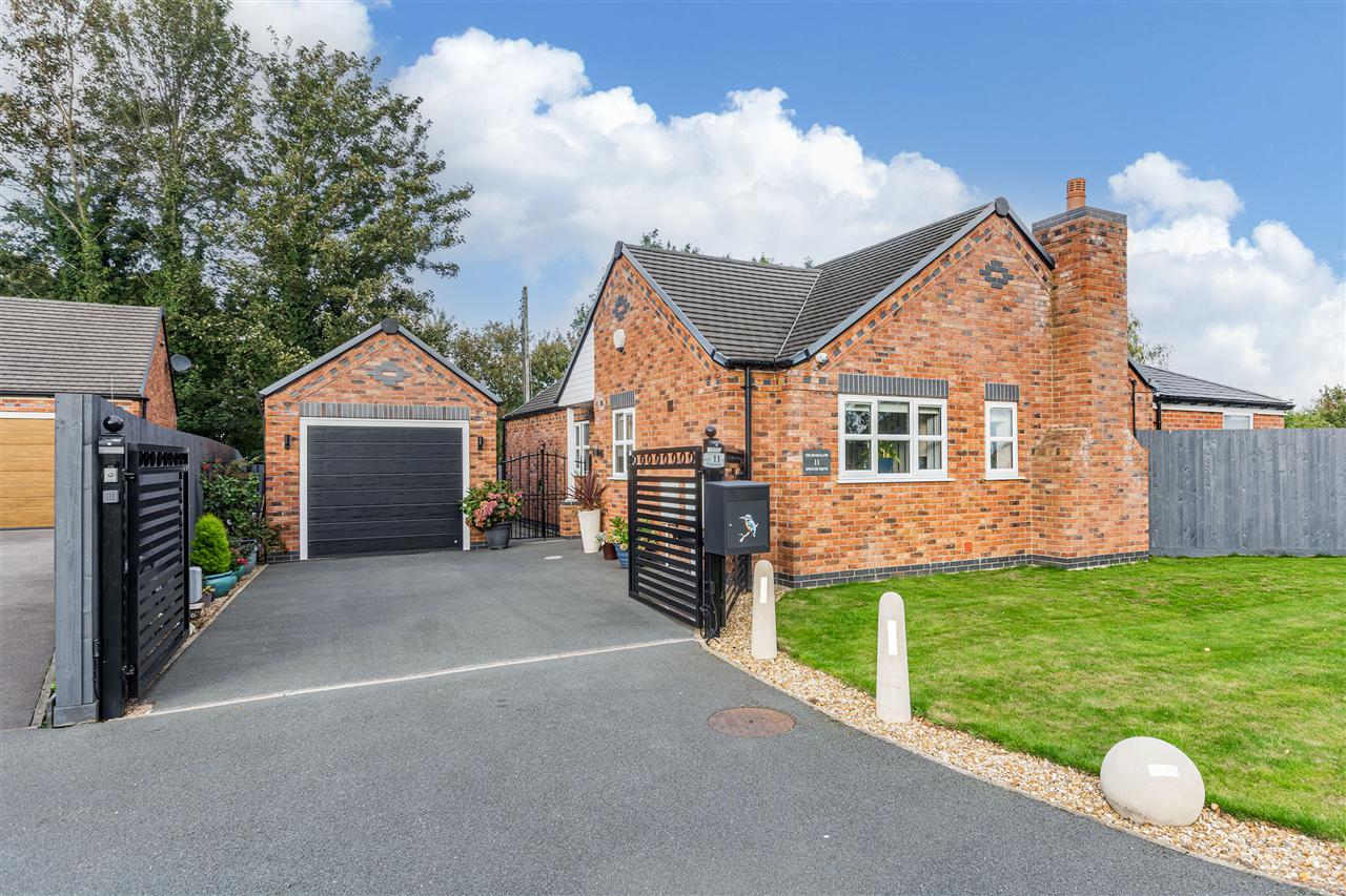 The bungalow is set down a private road and has electric gates which gives access to the driveway and detached brick garage with electric door. Additional car parking and removable bollards can potentially give further vehicle parking. The bungalow is set on a generous plot which is mainly laid to lawn and a patio area set to the front of the garden room offering open views of the countryside.