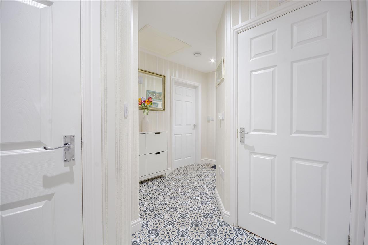 With composite entrance door to the front, airing cupboard housing the boiler, spotlights to ceiling, fully tiled floor running through to the kitchen with under floor heating and access to the attic (partly boarded), alarm system. Access is provided to the lounge, breakfast kitchen, two bedrooms and bathroom