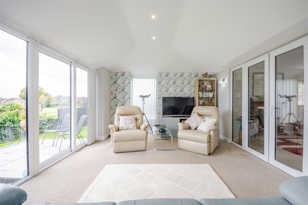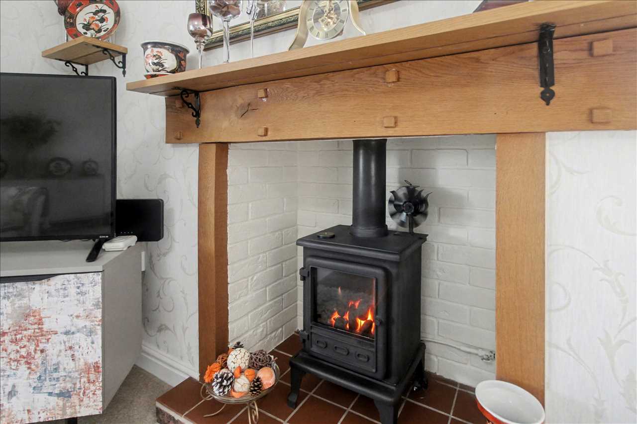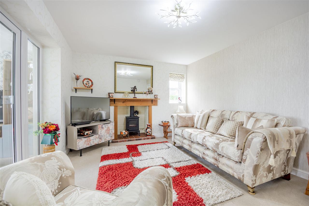 With UPVC doors leading to the garden room, feature Inglenook fireplace with inset gas wood burning style stove, under floor heating, UPVC double glazed window