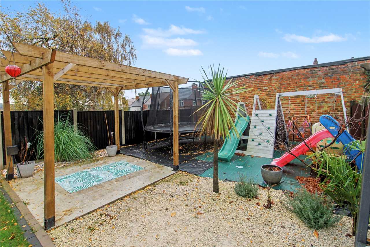 Set back from the road the property has a block paved driveway and gravelled area which provides ample off road parking, double gates to the side leads to the single detached garage with power. The block paved area extends to the south facing rear garden which as a beautiful large patio area. Gated access leads to a further lawned area, flower bed borders with a range of plants and shrubs. The garden extends to play area and additional patio with pergola. The garden enjoys a good level of privacy and is enclosed by timber fencing with gated access to the side