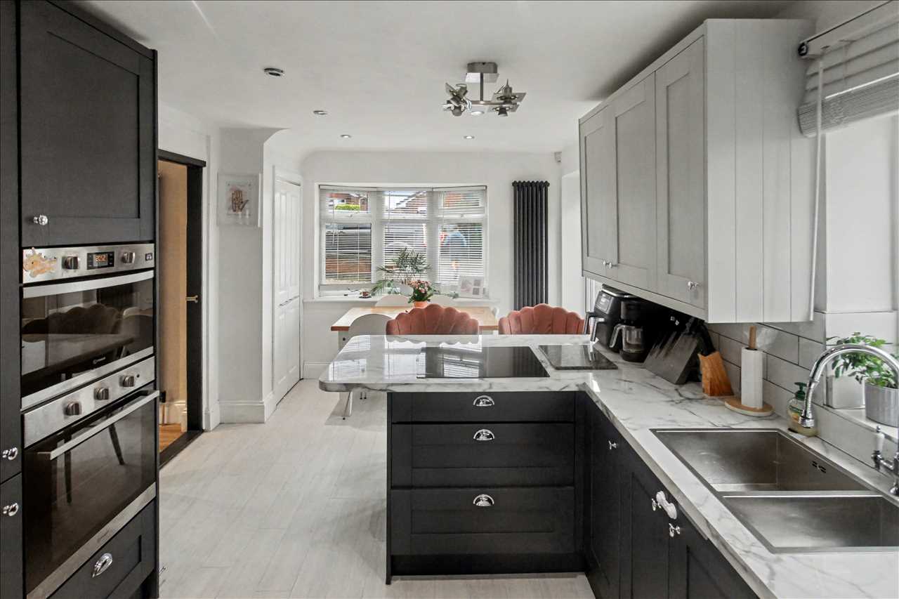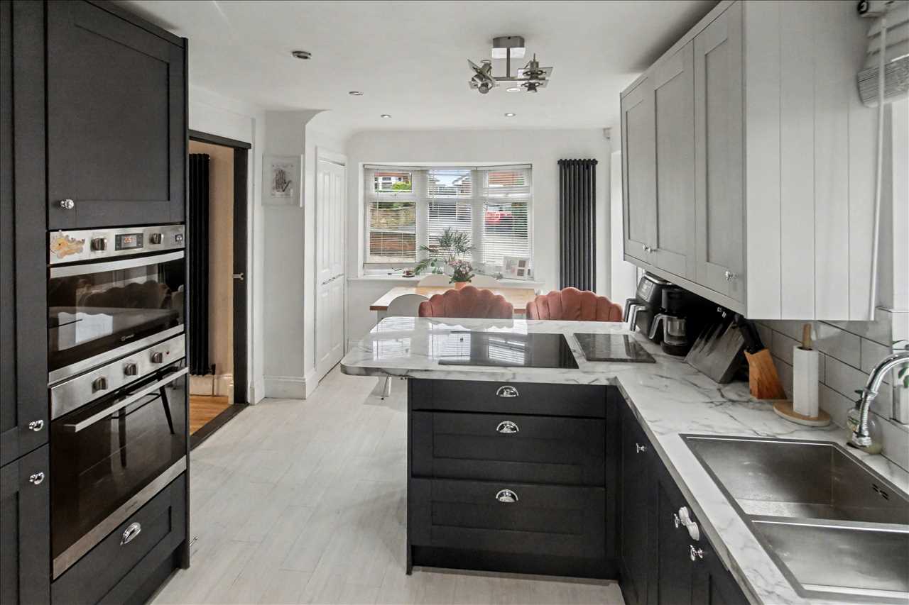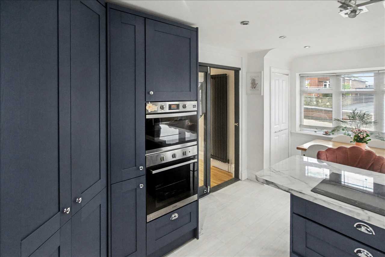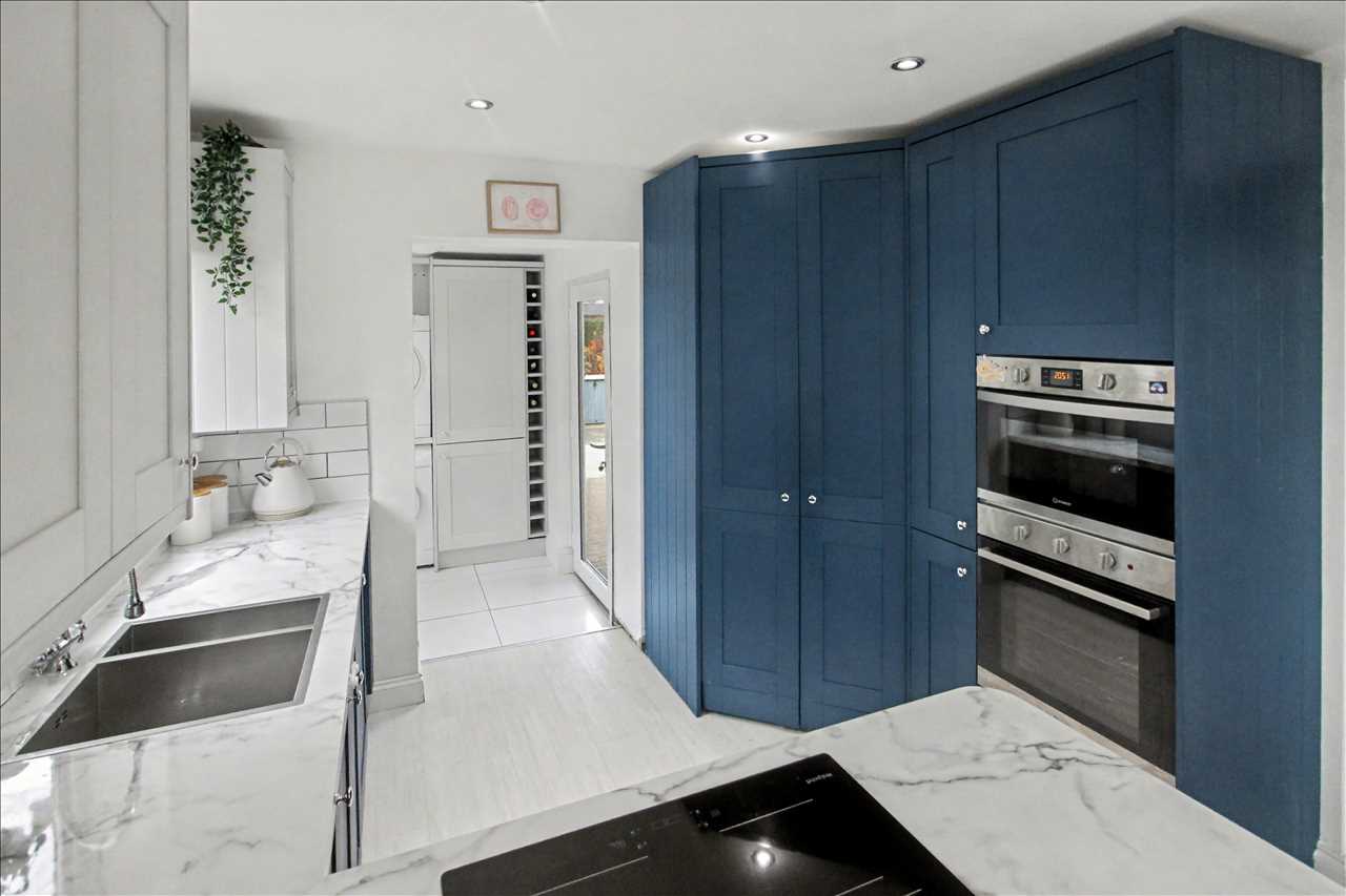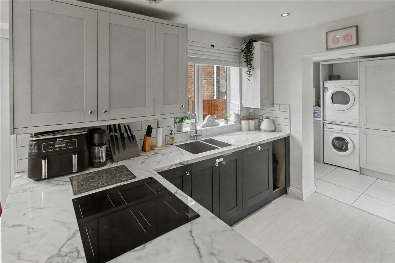A spacious and bright kitchen/diner which has a range of matching wall and base units, work surfaces incorporating a one and a quarter bowl sink and drainer unit with mixer taps. Integrated appliances to include: waist height oven and microwave, induction hob and dishwasher. Tiled splash back areas, under stairs storage, feature vertical radiator and wood effect laminate flooring. UPVC double glazed bay window to the front, uPVC double glazed window to the side, French doors to the side leading to the block paved driveway.. Open plan access to the utility room.