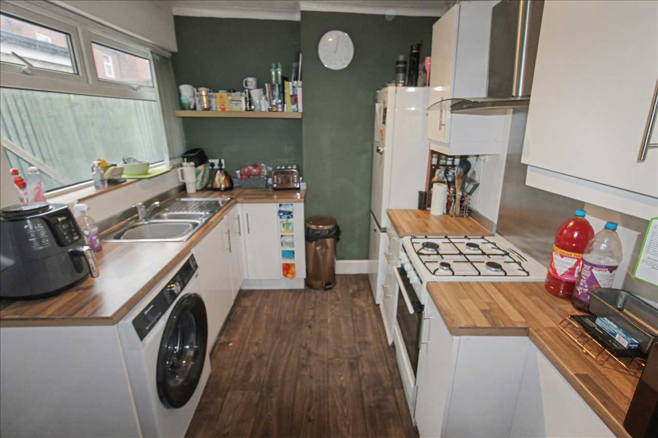 upvc door to the enclosed rear garden. Double glazed window to the side elevation. The kitchen comprises of a one and a half bowl sink unit inset into work surfaces, a range of base and wall units, space for cooker with extractor hood and plumbing for automatic washing machine.