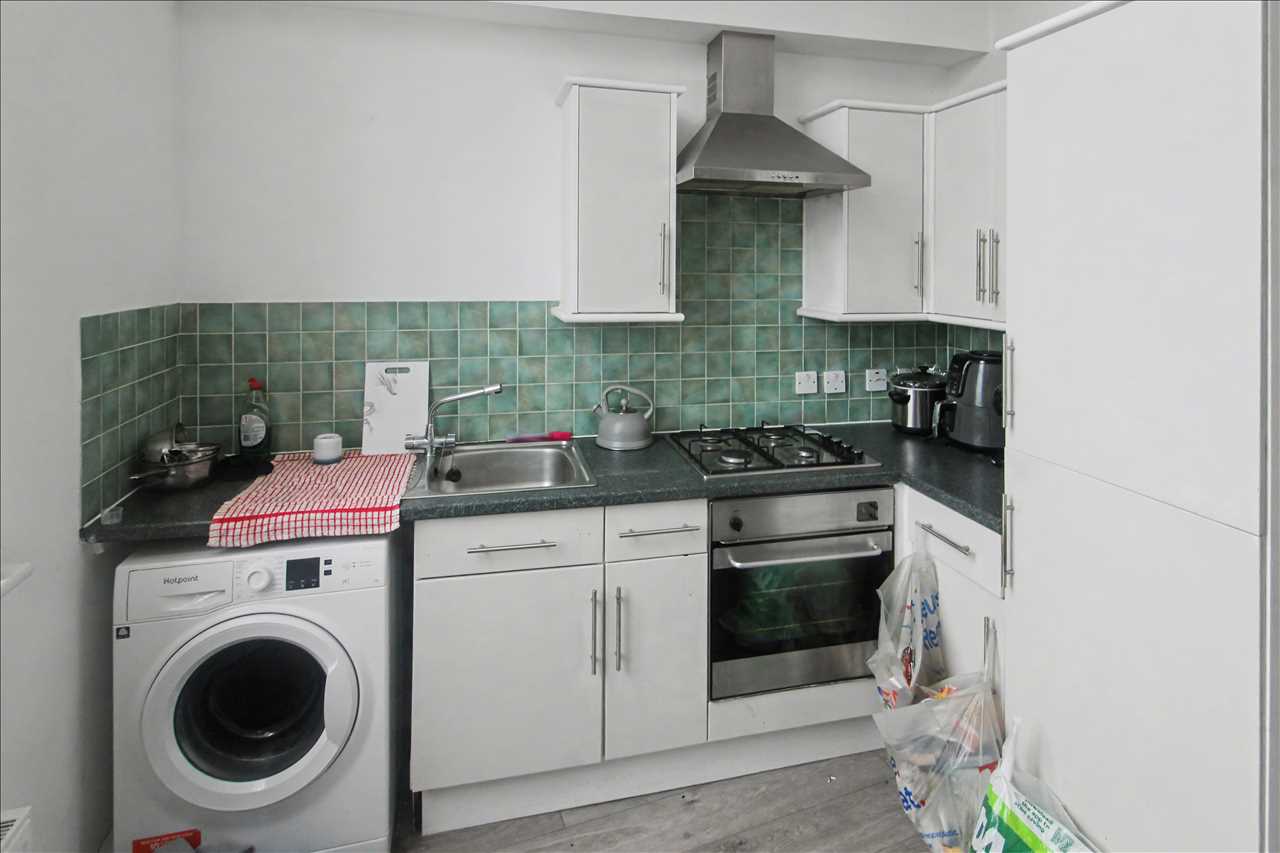 Comprising of a stainless steel sink unit with mixer taps and side drainer inset into roll edge work surfaces a range of base and wall units, built in oven hob and extractor hood, built in fridge/freezer. Plumbing for automatic washing machine.