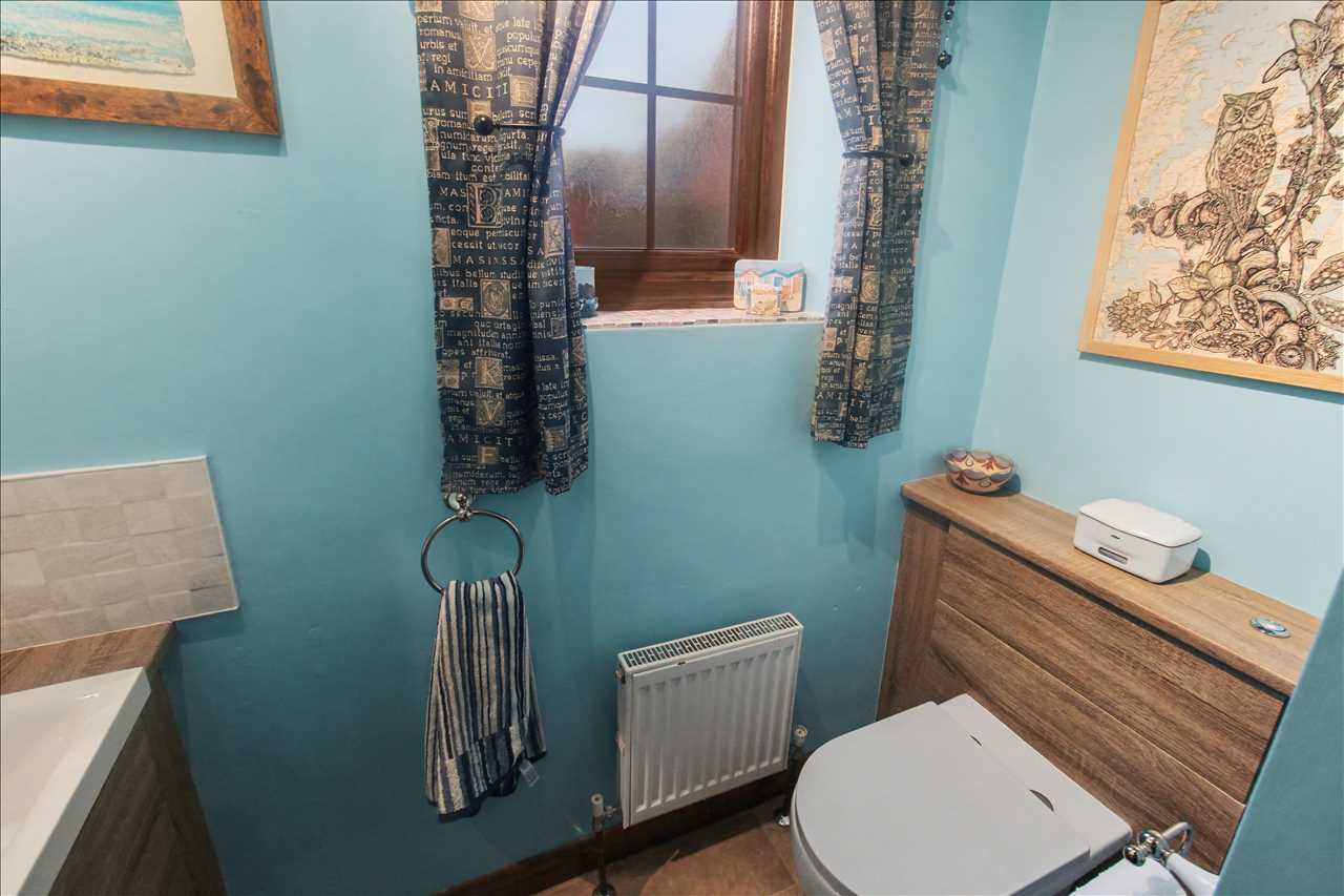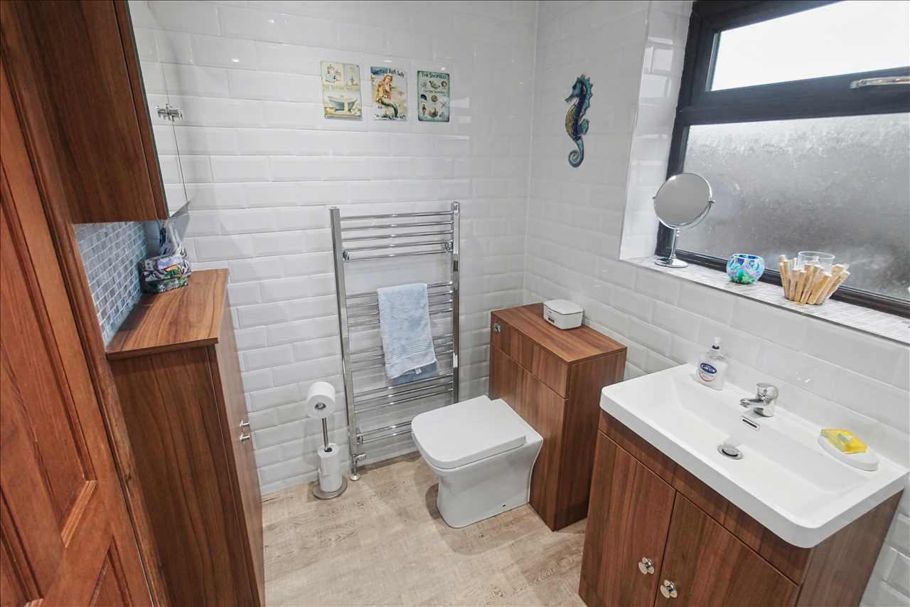 Having a double glazed window to the front elevation, low flush wc, wash hand basin with storage below. Central heating radiator.