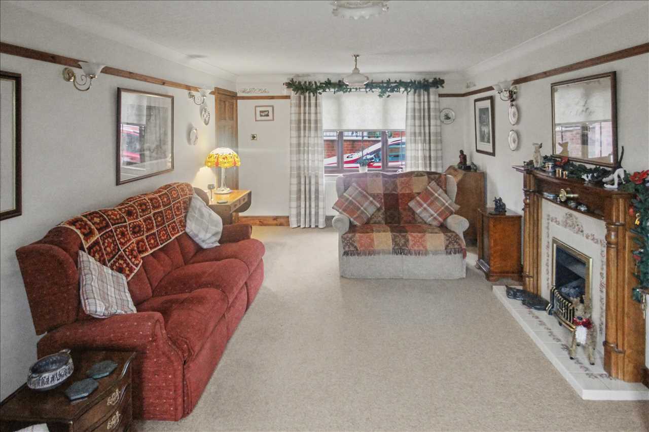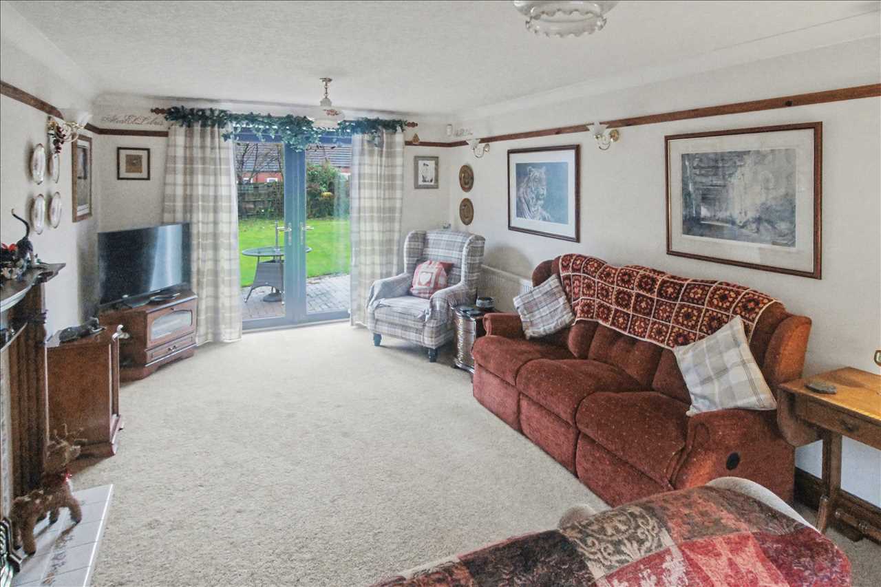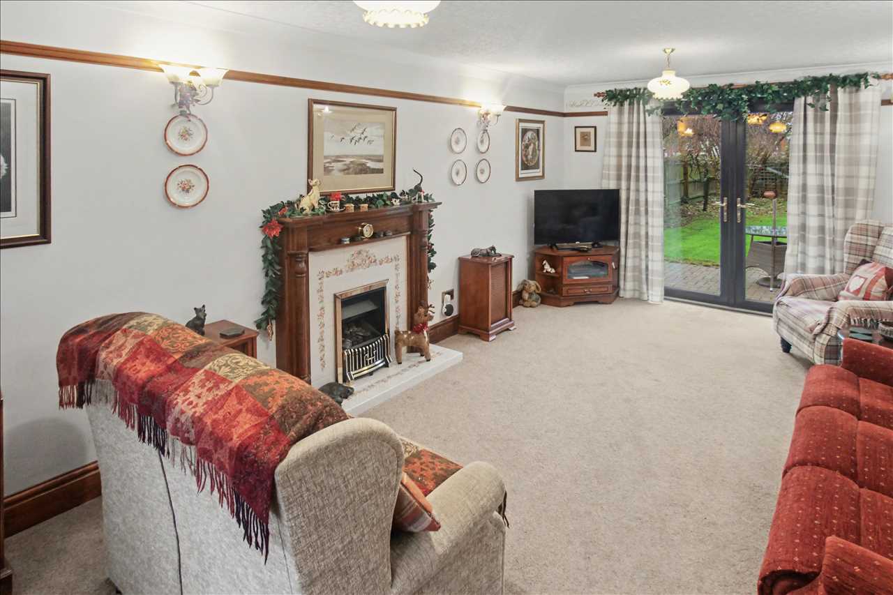 The large lounge has a double glazed window to the front elevation and double glazed French doors opening onto the enclosed rear garden. The lounge has a gas fire with Adams style fire surround, wall lights and central heating radiator.