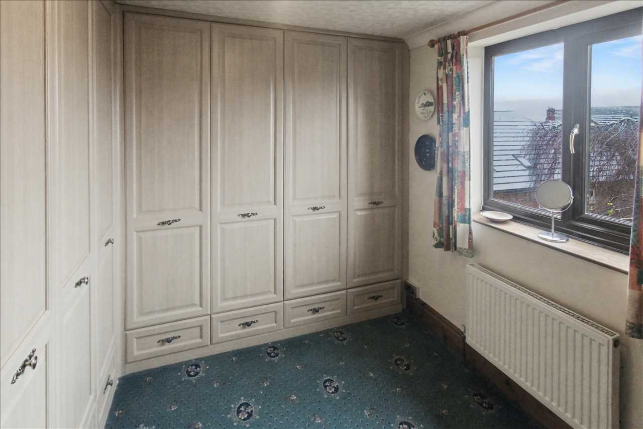 Double glazed window to the rear elevation and central heating radiator. Fitted wardrobes, the room dimensions are to the front of the wardrobes.