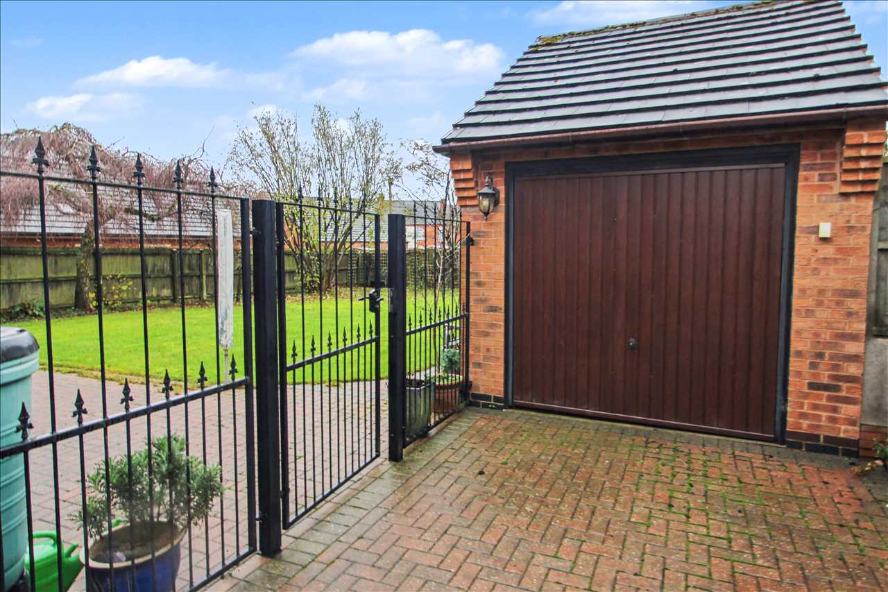 Block paved driveway to the front of the property giving additional car parking this is complemented by a brick and wrought iron perimeter. The block paved driveway extends to the side of the property which leads to the detached brick garage. Secure gated access leads to the enclosed large rear garden which has a patio area and is mainly laid to lawn. Fenced borders.