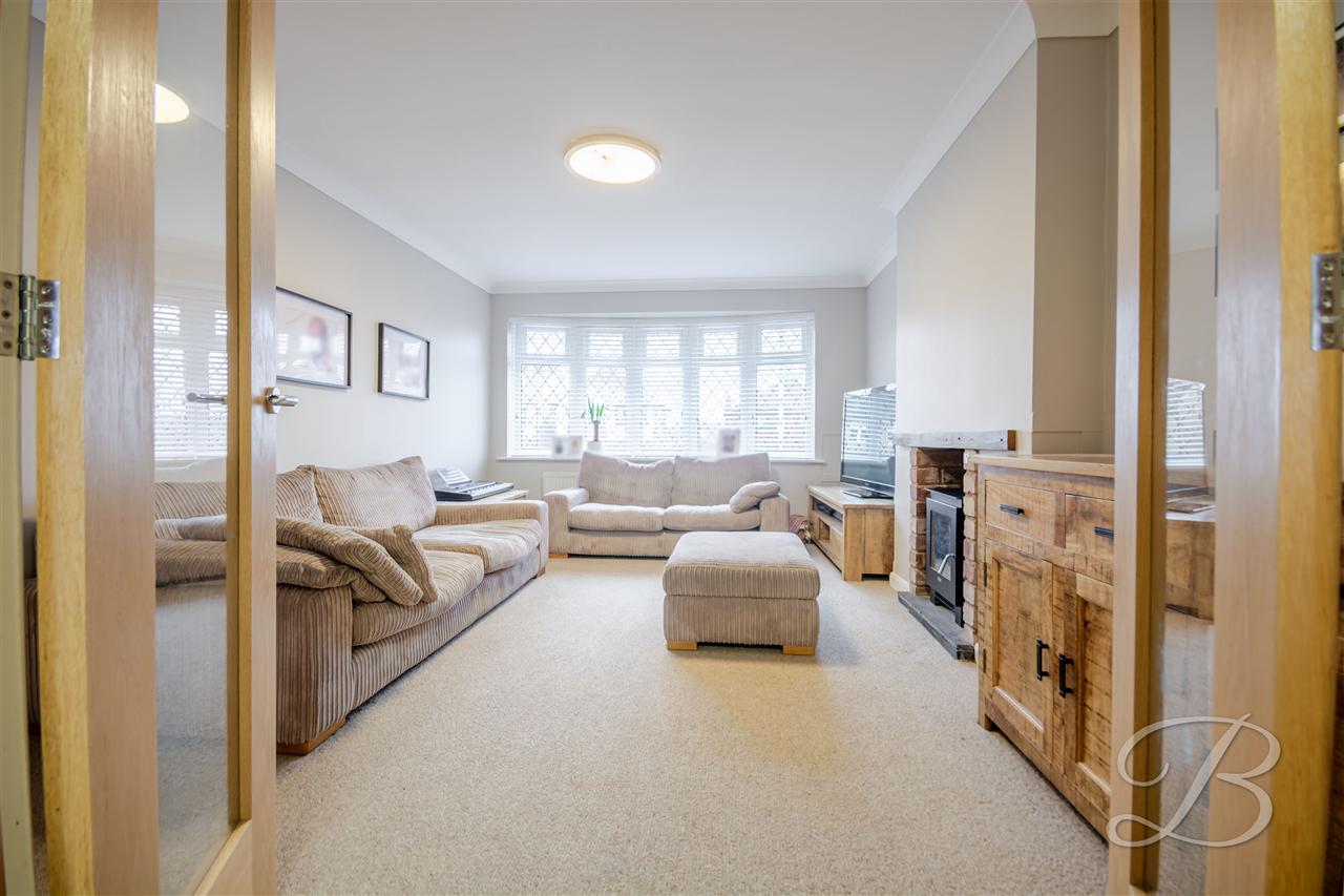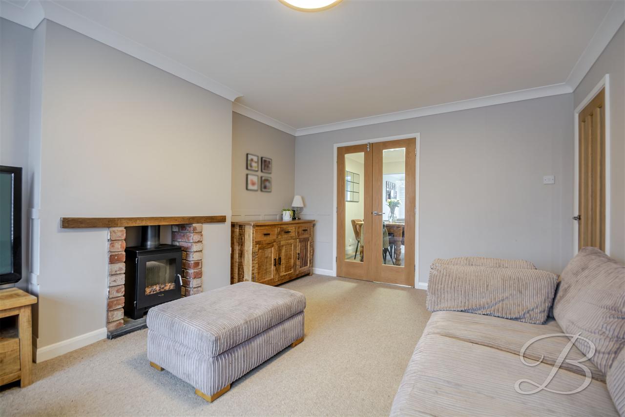 The light and spacious lounge has a double glazed window to the front elevation, brick hearth housing wood burning stove, radiator, glazed bi-fold doors leading to the dining room/study