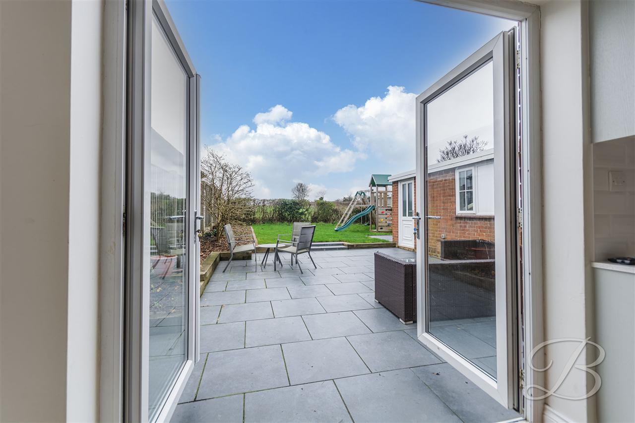 The front of the property is brick paved to provide off road parking, with driveway to the side leading to the detached garage and rear garden. The fully enclosed rear garden is a good size with lawned and patio areas and has open views over the countryside