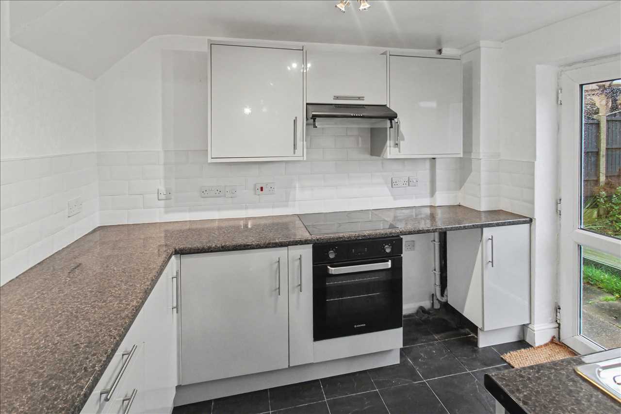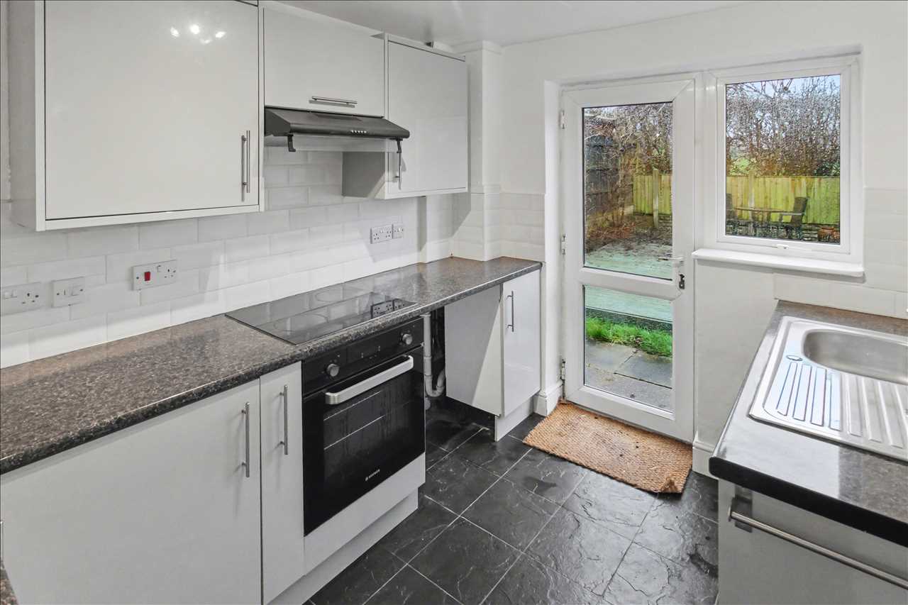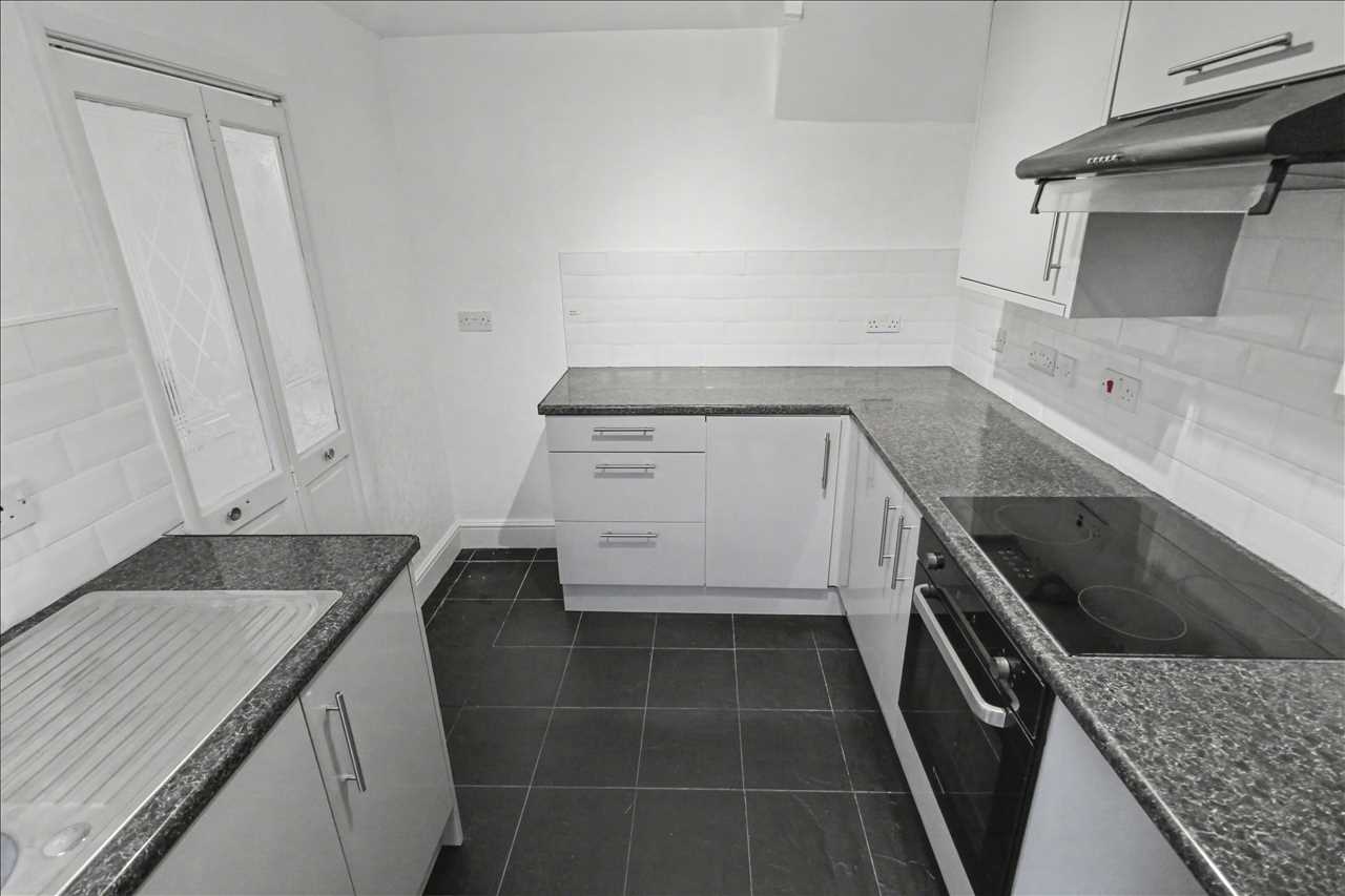 Double glazed window to the rear elevation and a double glazed door leading to the enclosed rear garden. The refitted kitchen comprises of a stainless steel sink unit with side drainer inset into works surfaces, a range of base and wall units, built in oven hob and extractor hood. Tiled splash back areas. Plumbing for automatic washing machine.