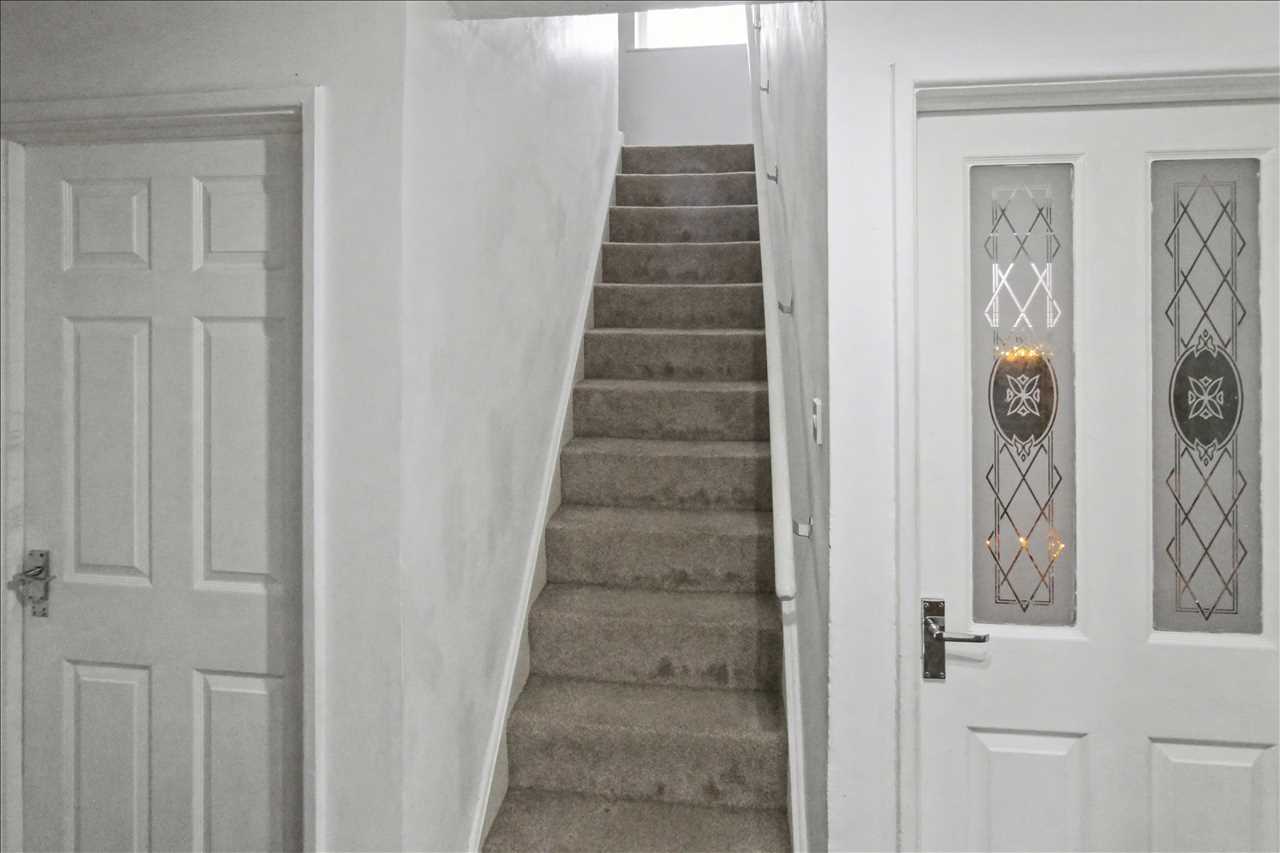 Composite door to the side elevation leading to the entrance hall, staircase to the first floor, access to the lounge, kitchen, bedroom, bathroom and storage cupboard.
