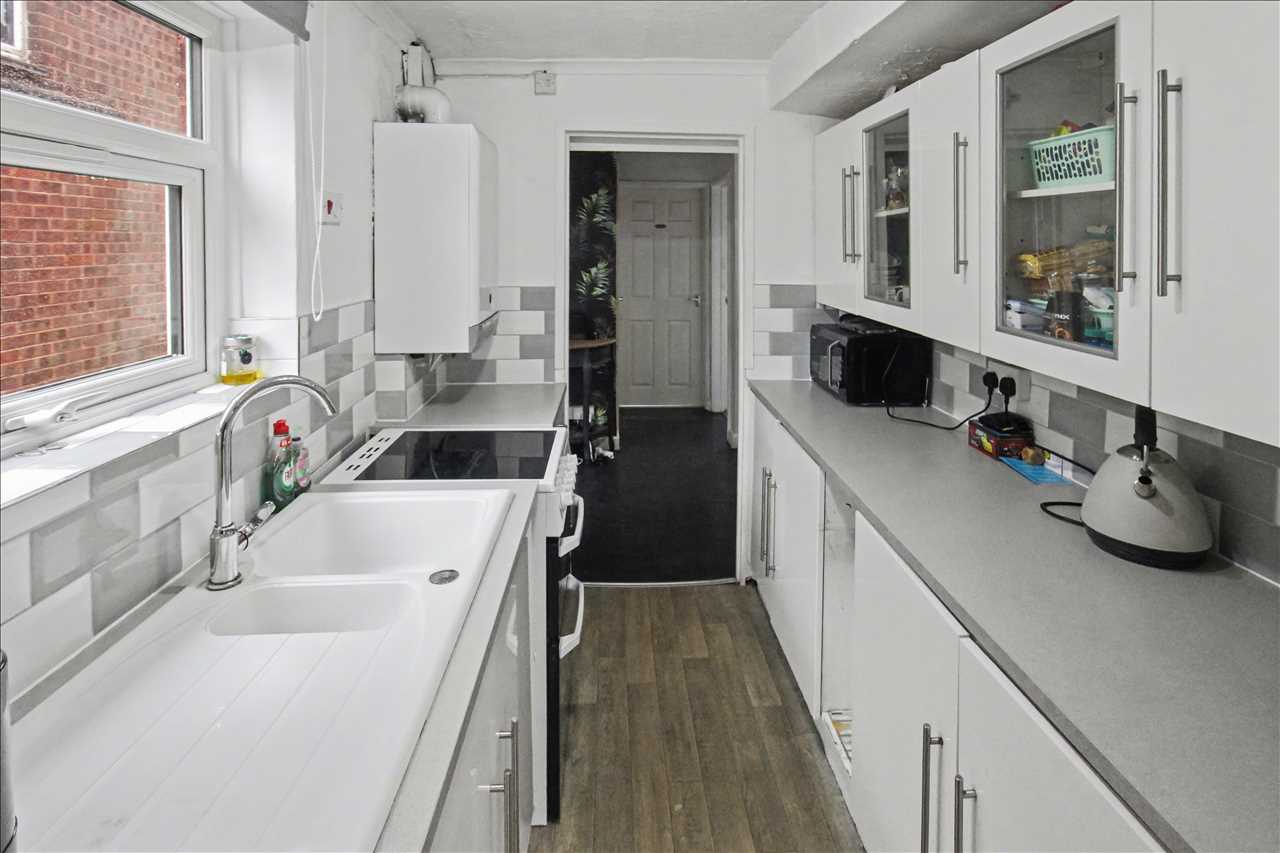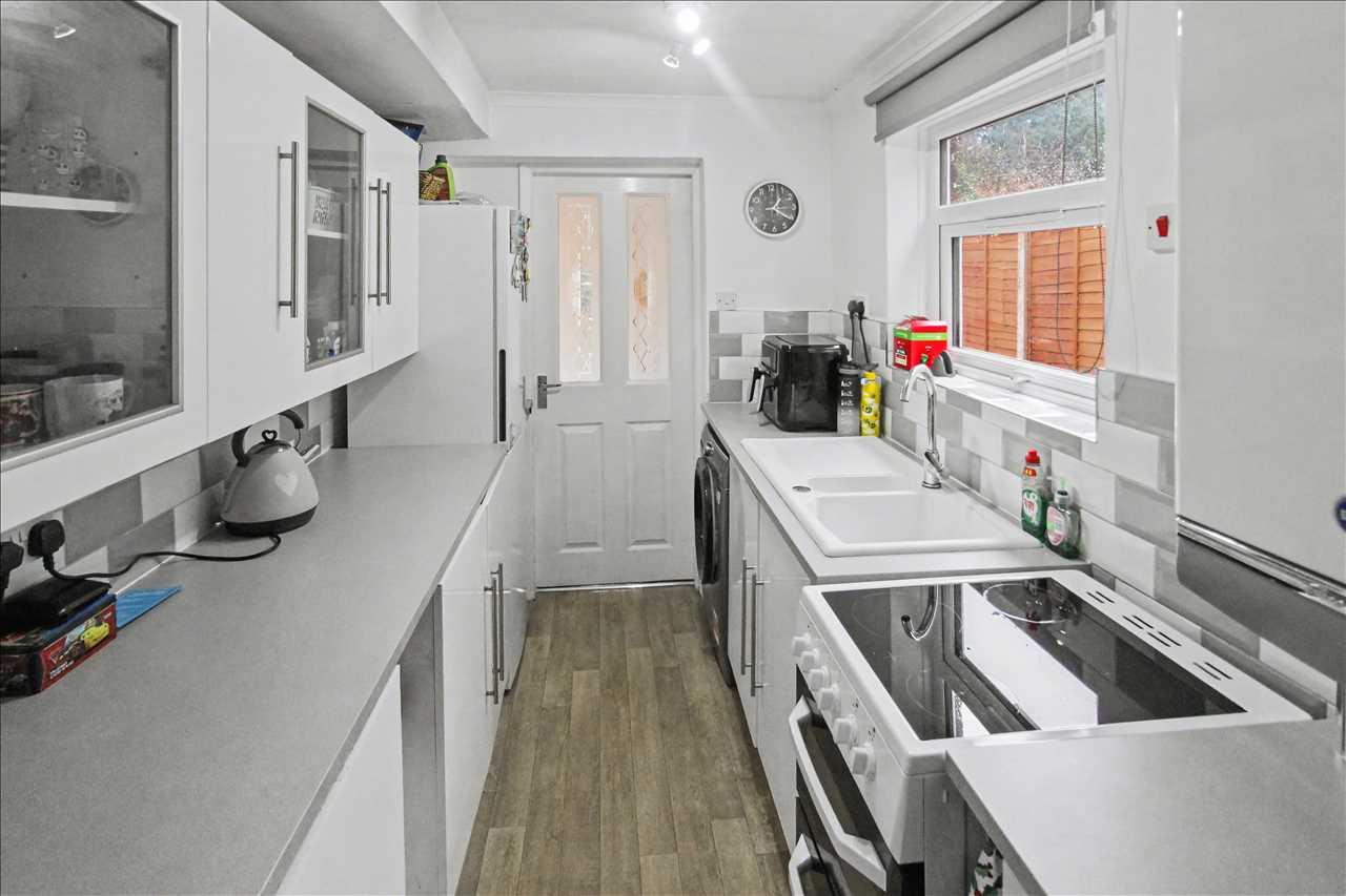 Comprising of a one and half bowl sink unit with mixer taps and side drainer, inset into roll edge work surfaces, a range of base and wall units , tiled splash back areas, wall mounted boiler, plumbing for automatic washing machine. Double glazed window to the side elevation , access to the dining room/sitting room and the entrance hall.