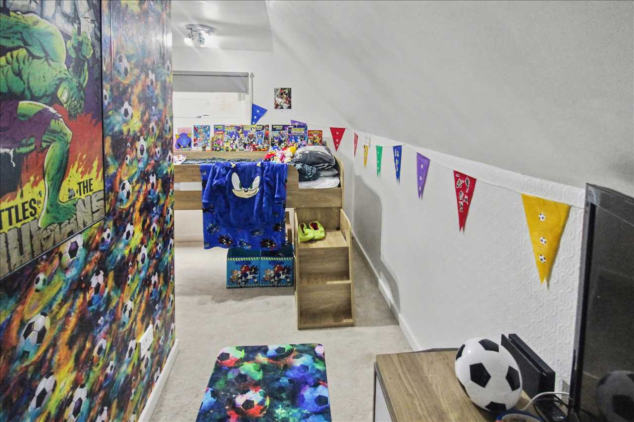 Access to two bedrooms, storage cupboard into loft space.