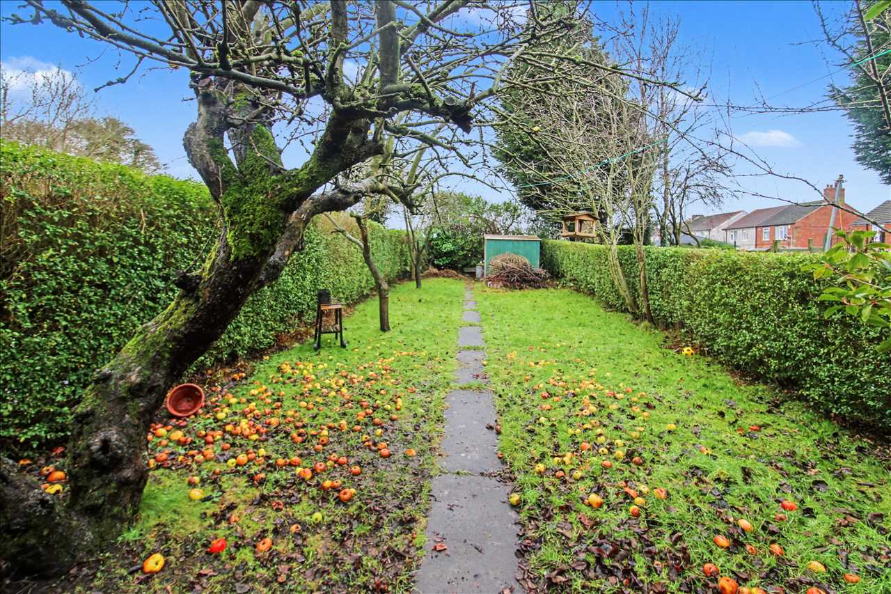 The large enclosed rear garden has a patio area, The garden is mainly laid to lawn and is well stocked with mature shrubs and trees. Fenced borders.