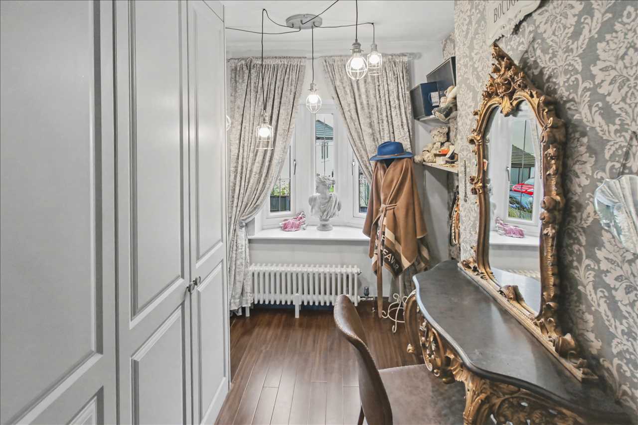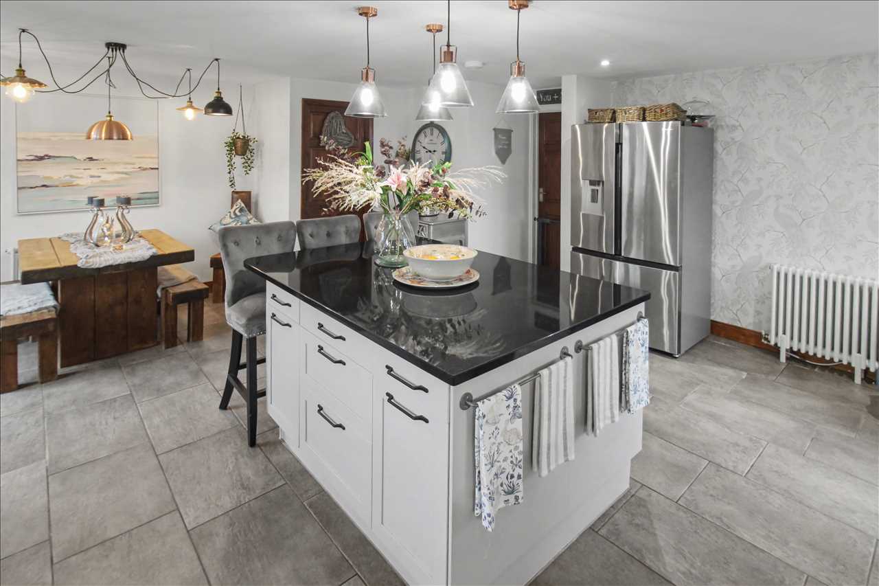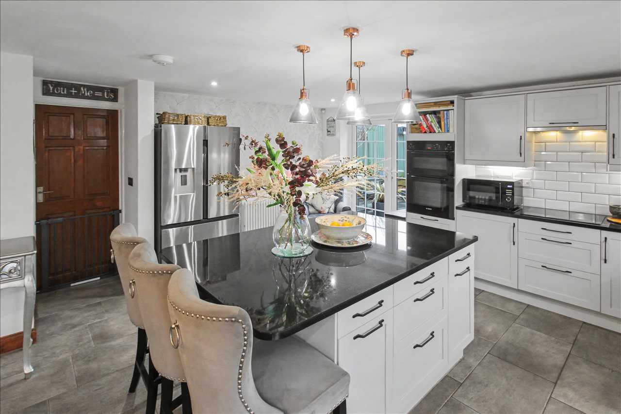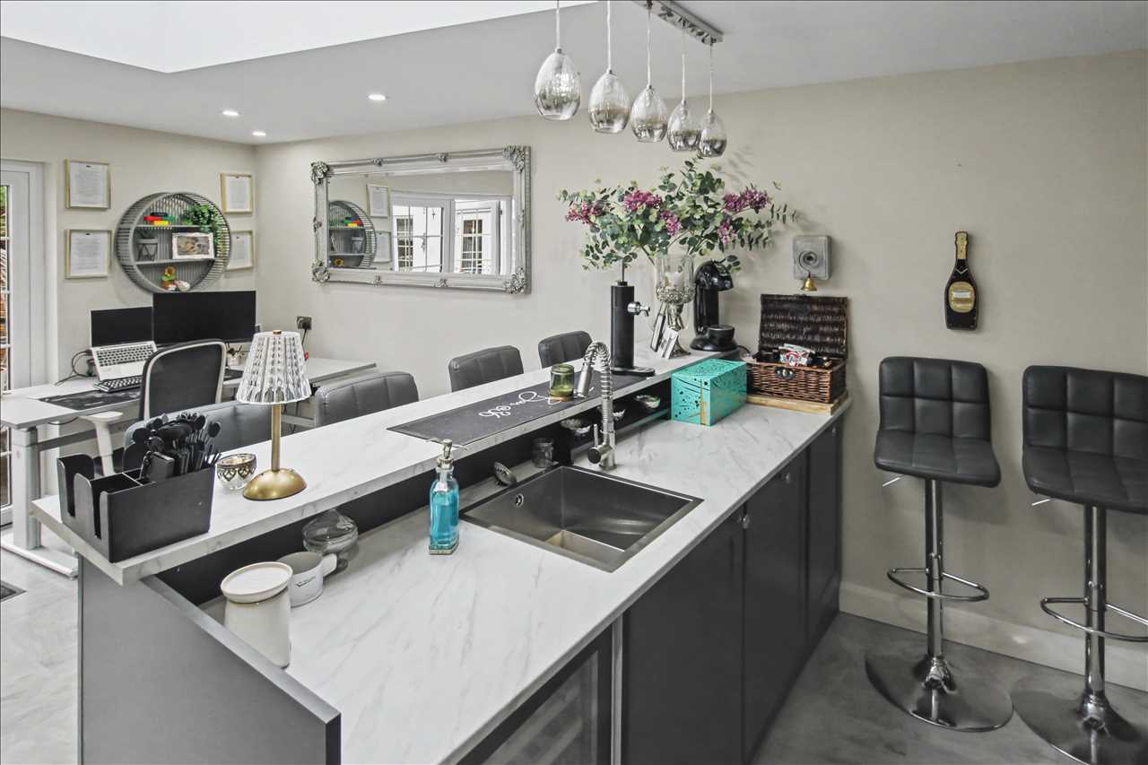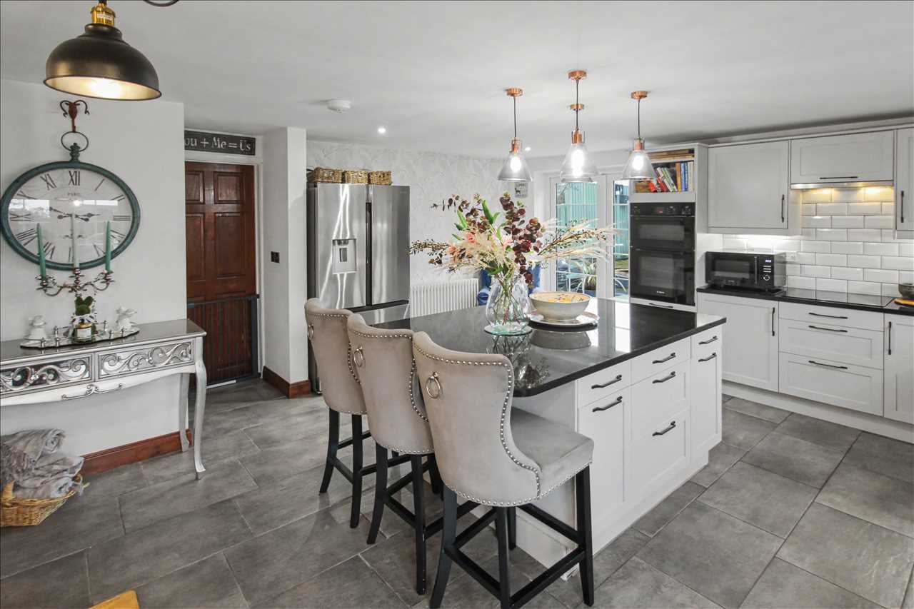 Your first though upon entering the kitchen will be wow, the stunning kitchen offers double glazed French doors to the side and rear elevation making it a perfect entertaining space during the summer, the kitchen comprises of one and a half bowl sink unit with mixer taps and side drainer inset into works surfaces, a range of base and wall units with display lighting under the wall mounted units, an island bar also having base and draw units below. Built in oven hob and extractor hood, built in dishwasher. Two feature central heating radiators, tiled to the floor and tiled splash back ares, door leading to the side porch.