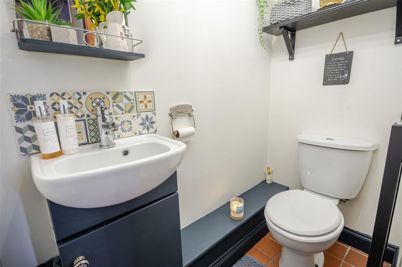 The ground floor WC comprises of low flush wc, wash hand basin, tiling to the floor and central heating radiator.