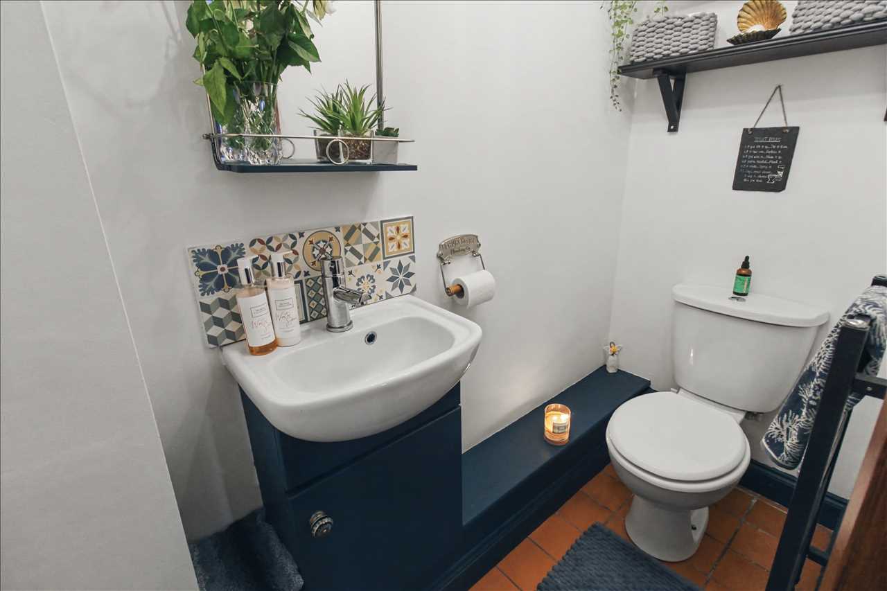 Comprising of low flush wc, wash hand basin, tiling to the floor. Central heating radiator.