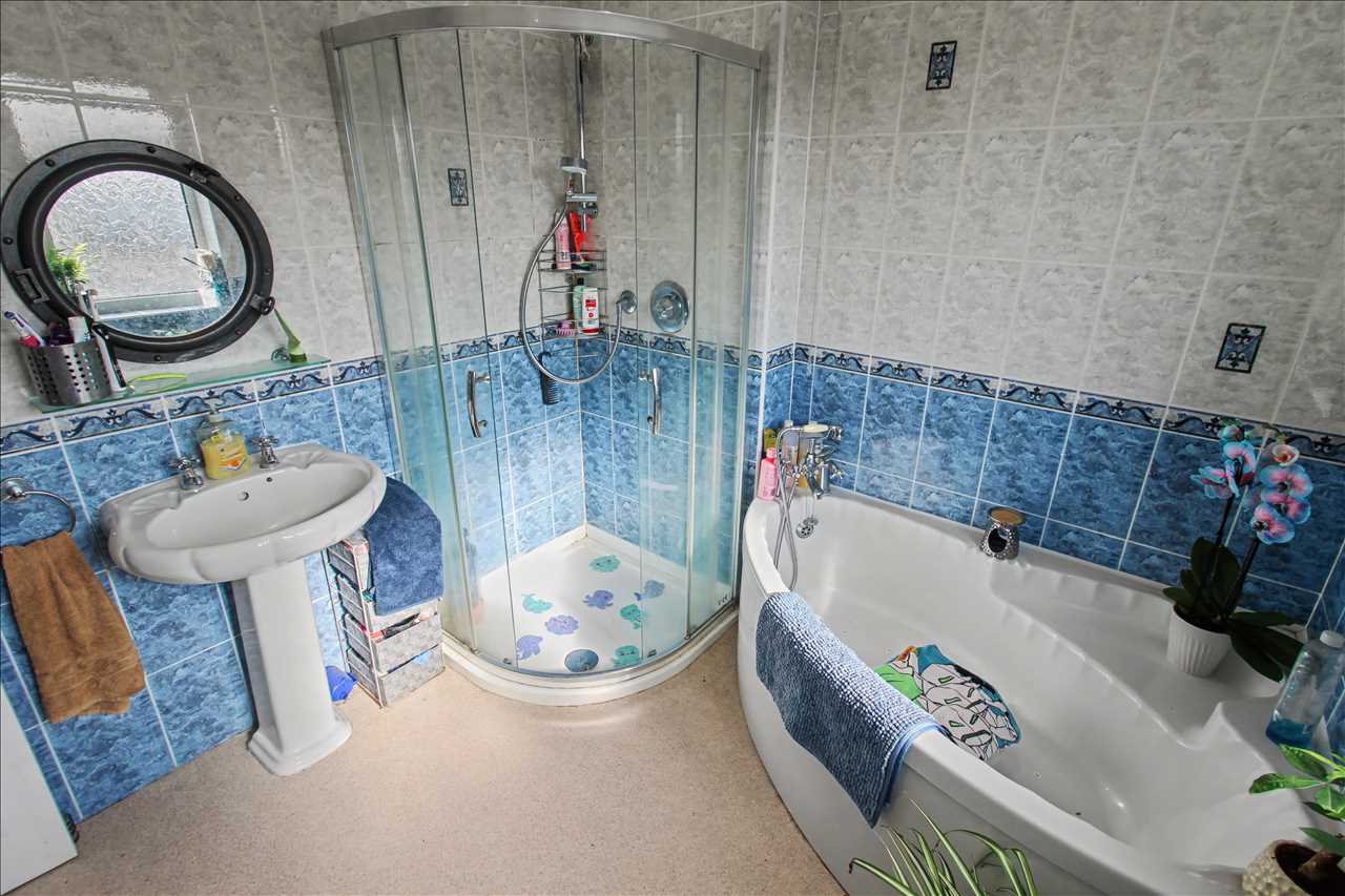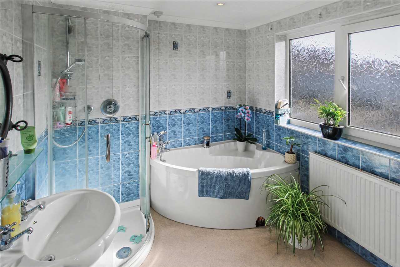 UPVC window to front elevation, white four piece suite comprising of panelled corner bath, shower cubicle, pedestal hand wash basin, WC, fully tiled walls, central heating radiator.