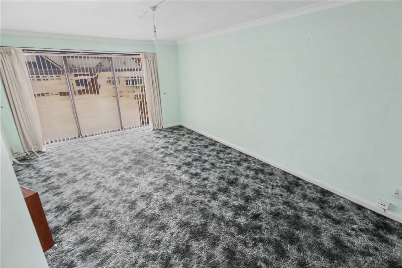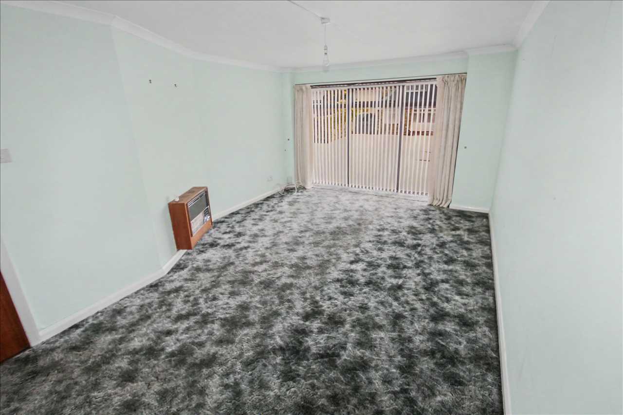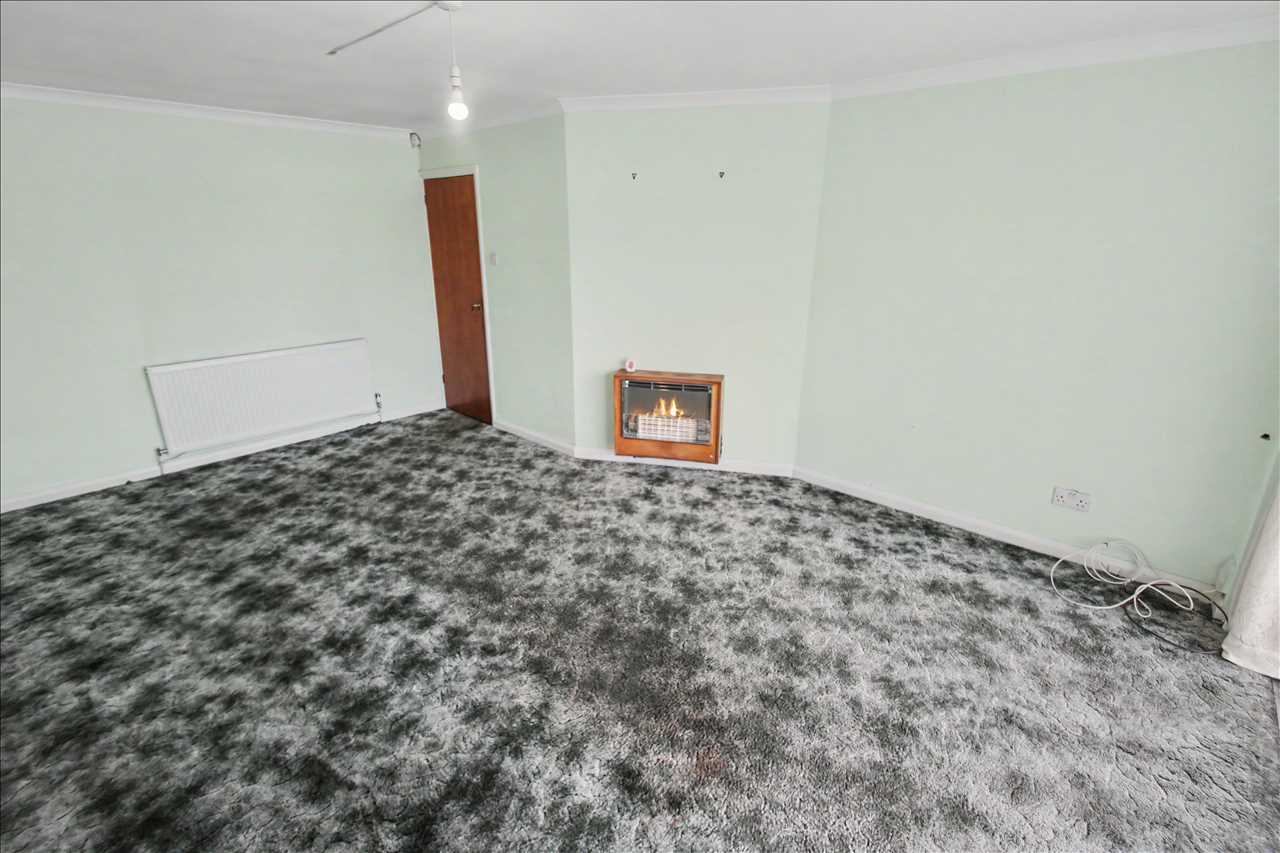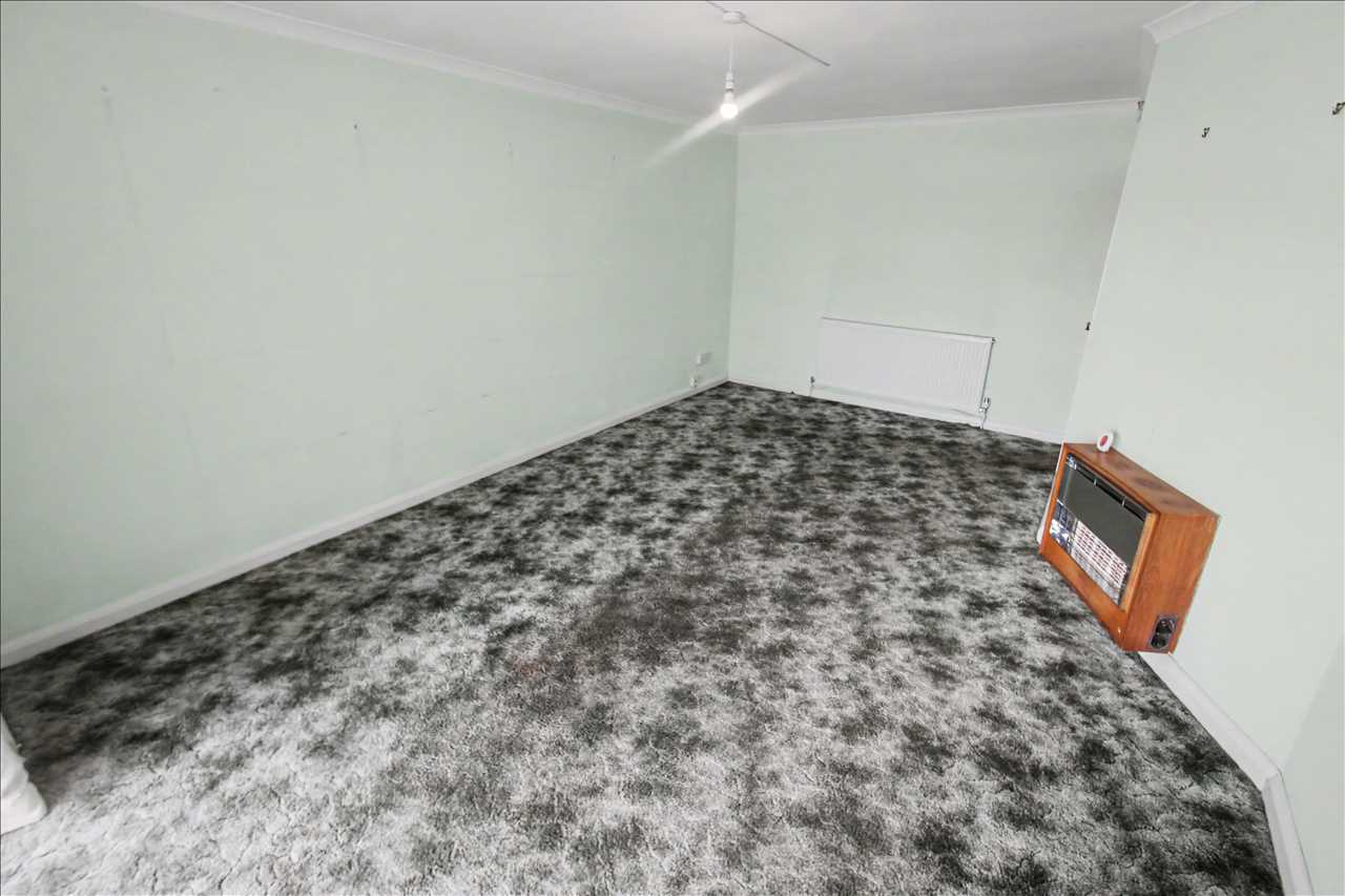 Spacious lounge with large double glazed windows to the front elevation. Wall mounted gas fire and central heating radiator.