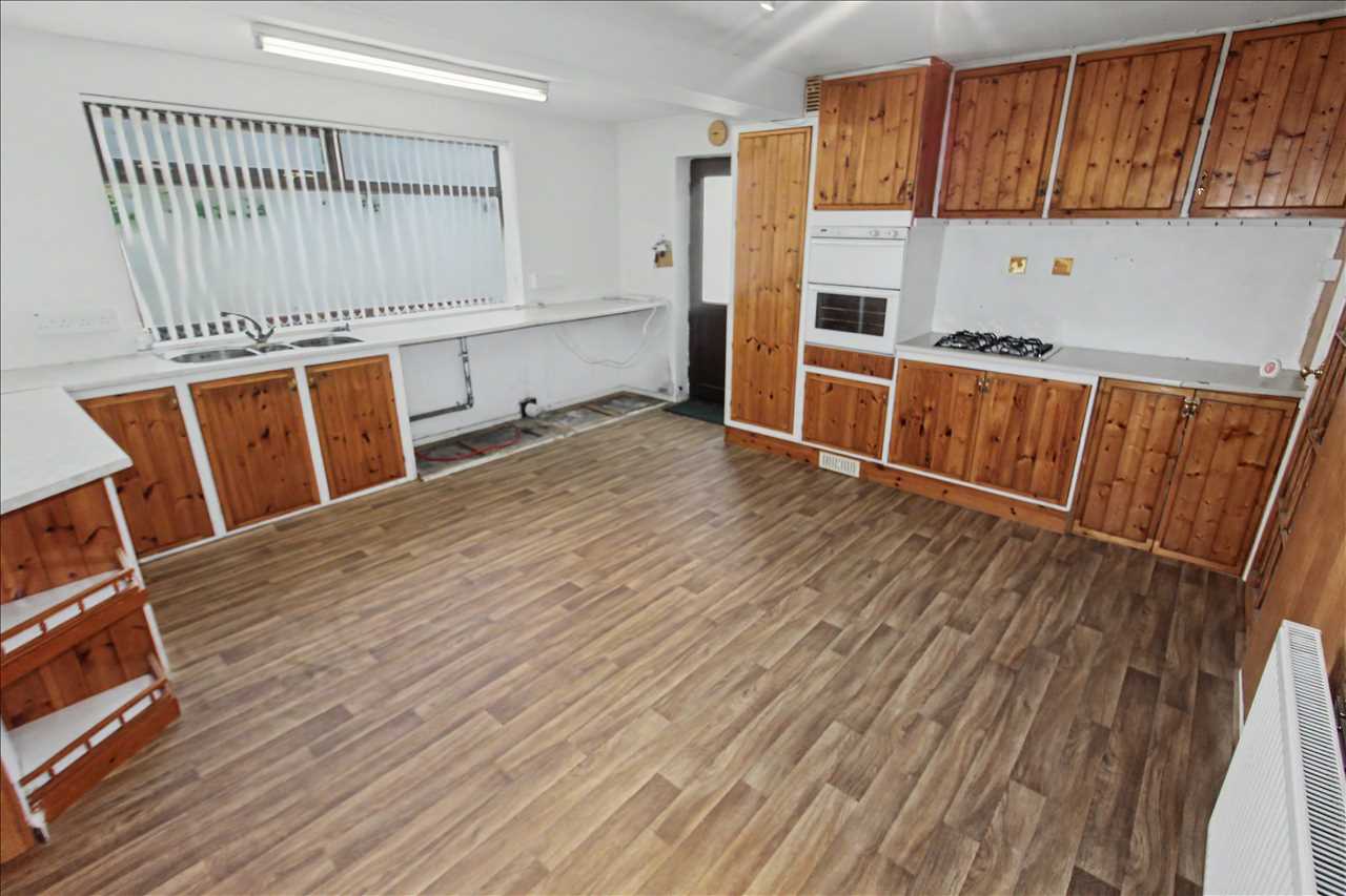 The extended large kitchen/diner has a upvc door to the side elevation and a double glazed windows over looking the enclosed rear garden. The kitchen comprises of a twin stainless steel sink unit with mixer taps inset into work surfaces, a range of base and wall units, built in oven and hob, space for white goods and plumbing for automatic washing machine. Central heating radiator.