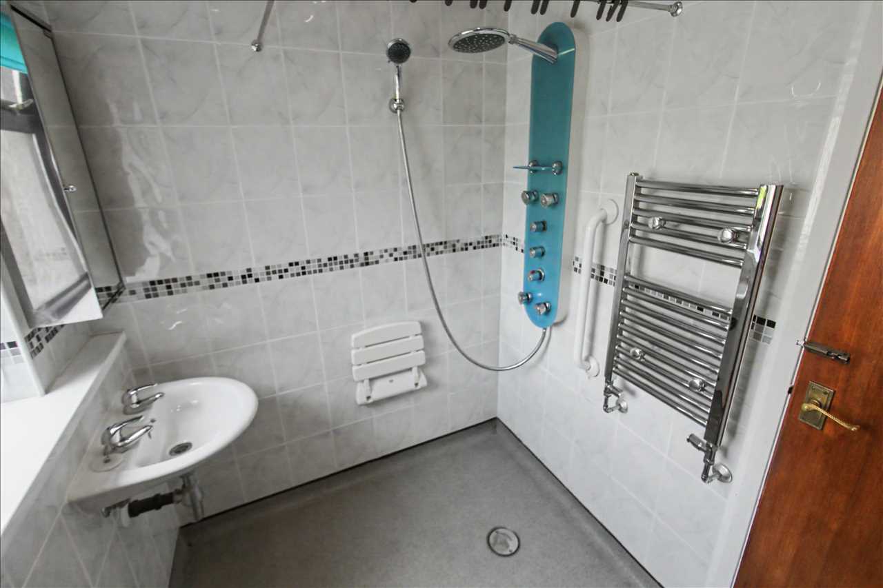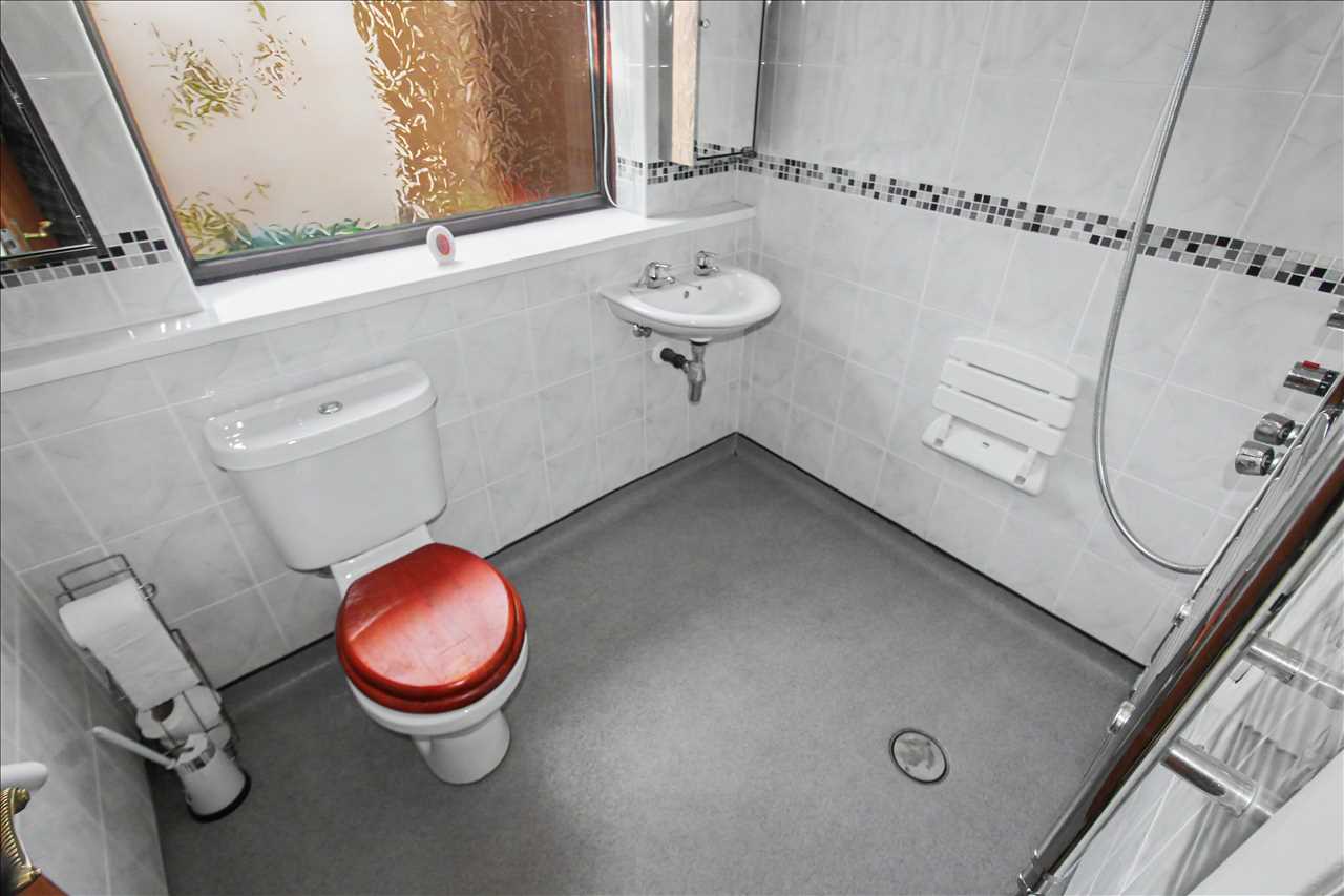 Double glazed window, the shower room/wet room comprises of a walk in shower area with seat, wash hand basin and low flush wc. Chrome heated towel rail.