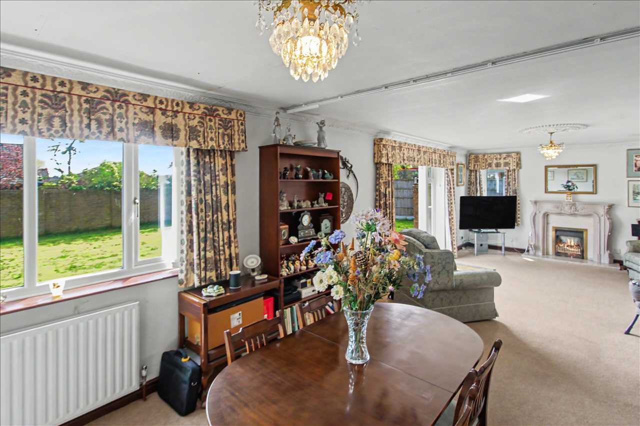 The lounge area has double glazed French doors opening onto the enclosed lawned rear garden. The lounge area has a gas fire (not tested by the selling agents) with fire surround, ceiling rose, a double glazed window to the side elevation and central heating radiator. Open plan access leads to the dining area.