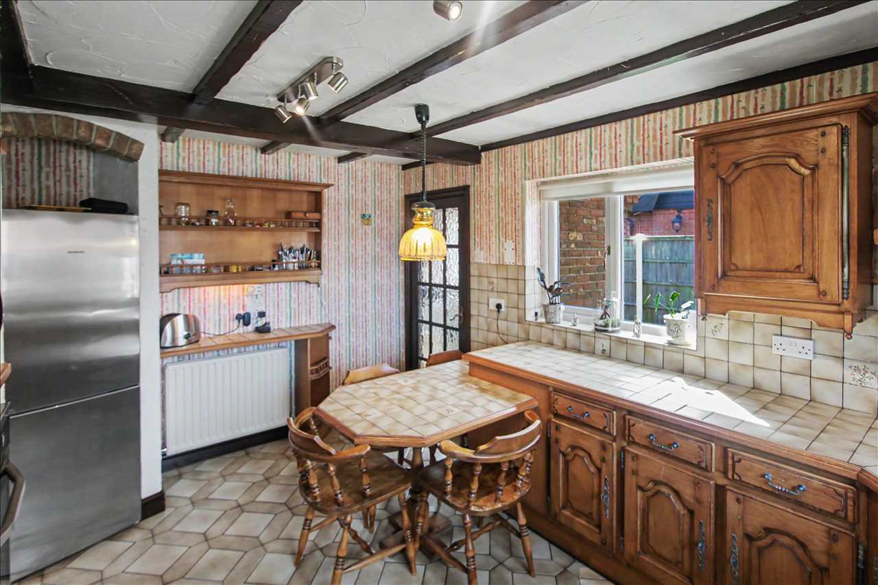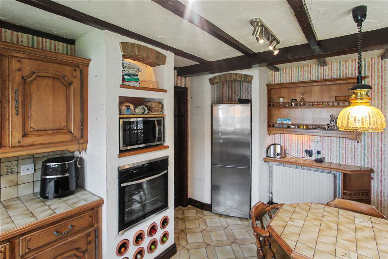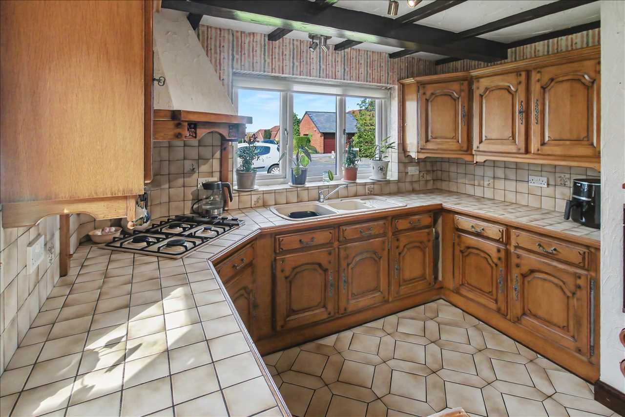 The spacious breakfast kitchen comprises of twin sink unit with mixer taps and drainer inset into tiled work tops which extends to the breakfast area, a range of base and wall units, built in oven hob and extractor hood, space for fridge/freezer, central heating radiator. Double glazed windows to the front and side elevations. Door leads to the utility room.