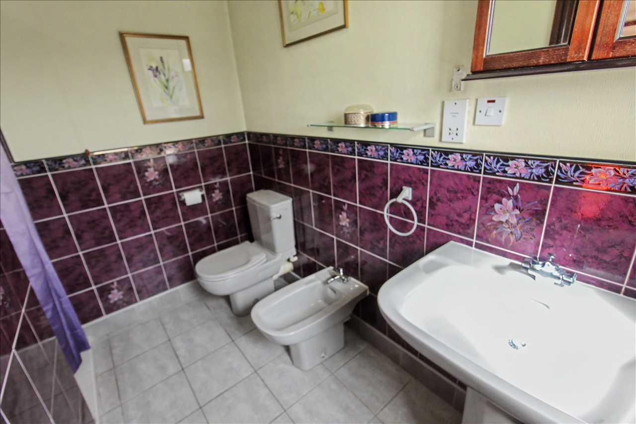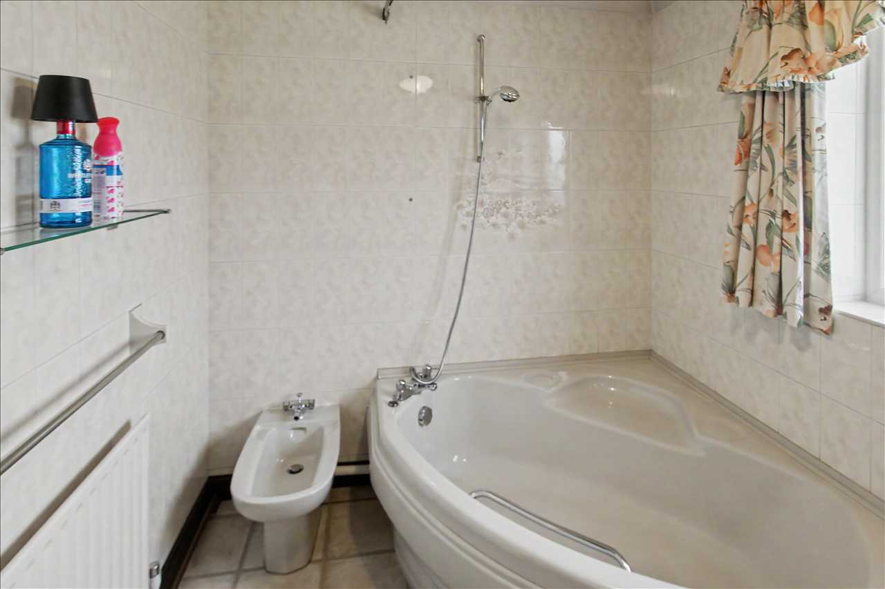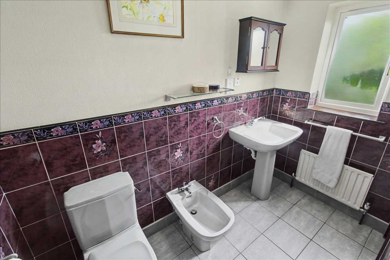 Frosted double glazed window to the rear elevation, the en suite comprises of pedestal wash hand basin, low flush wc, bidet and shower cubical. Tiling to the walls. Tiling to the walls and tiling to the floor. Central heating radiator.