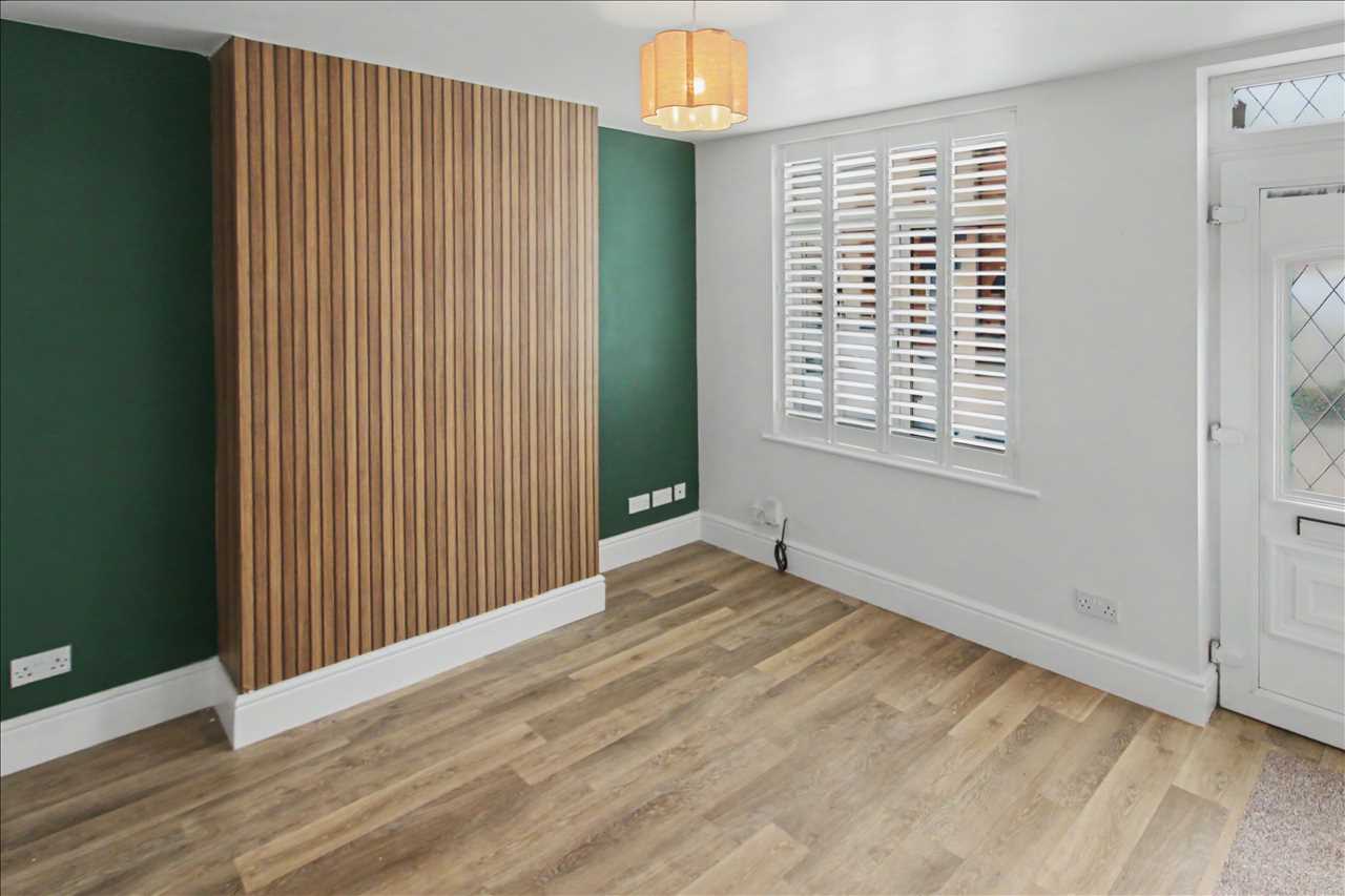 With double glazed entrance door, double glazed window to front elevation, radiator, laminate wood floor covering and door leading into the dining kitchen