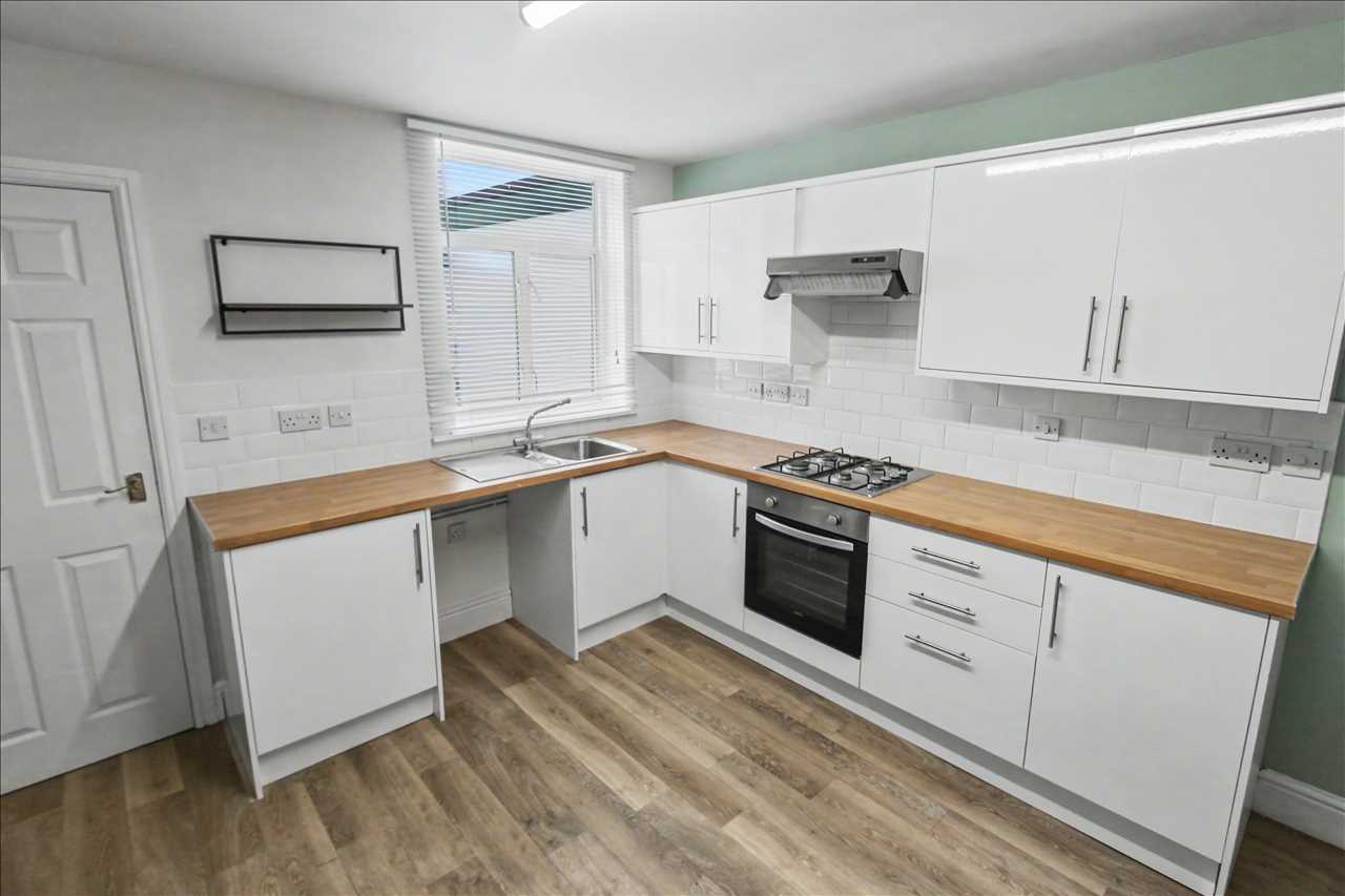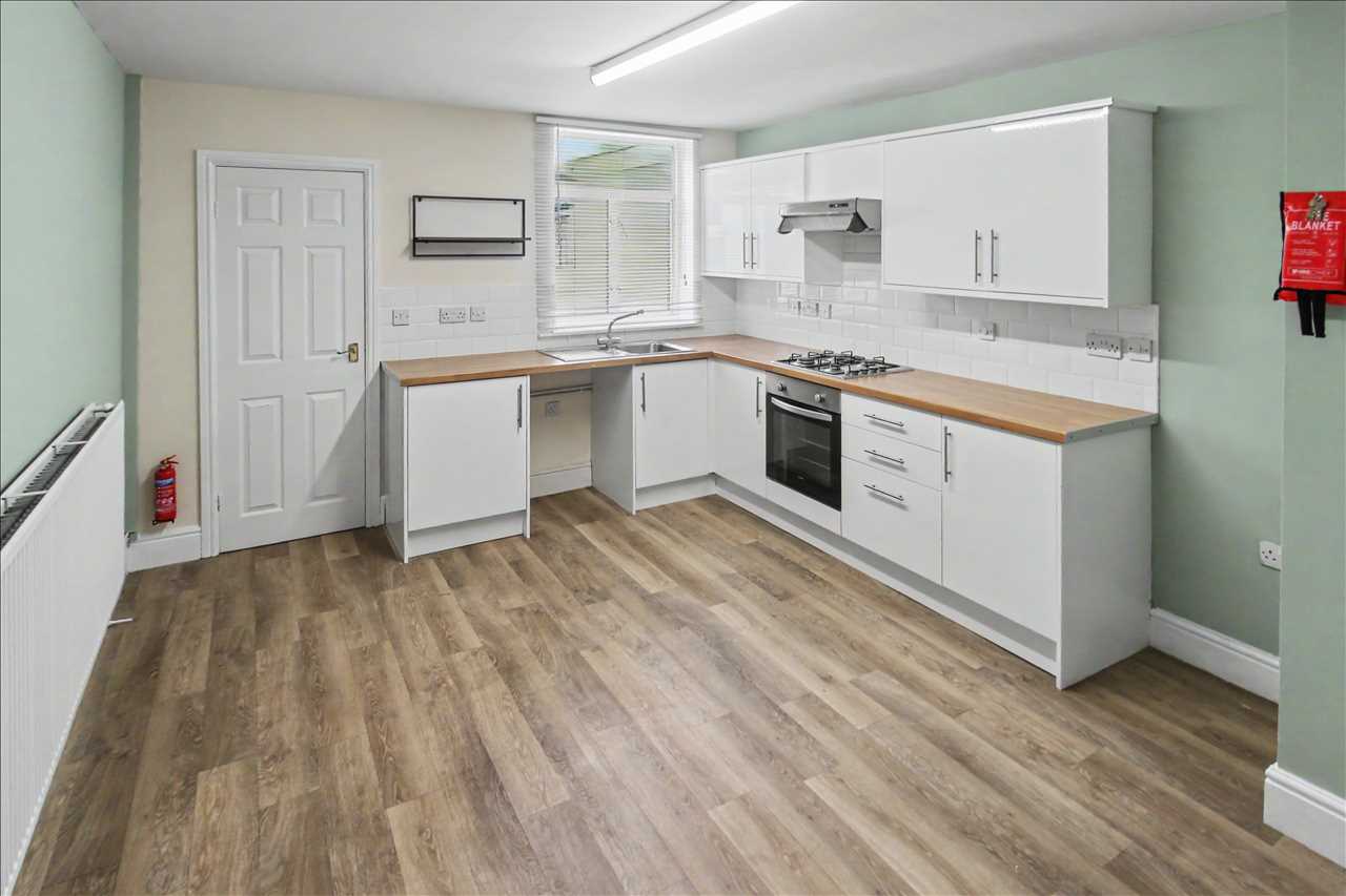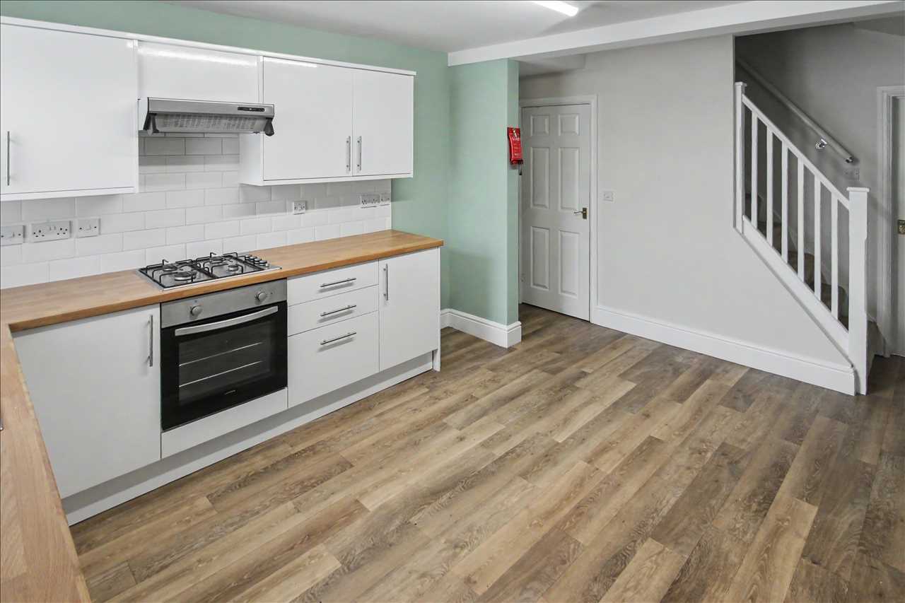With a matching range of base and wall units with inset single drainer sink and rolled edge work surfaces over, space and plumbing for automatic washing machine, space for fridge freezer, double glazed window to rear elevation, radiator, laminate wood floor covering, stairs leading off to the first floor accommodation and door leading through to the inner lobby