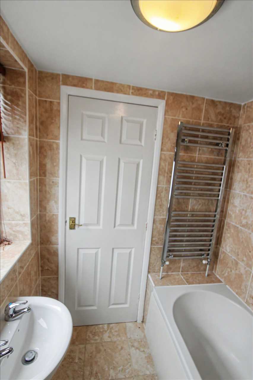 With pedestal wash hand basin, low flush wc, heated towel rail and extractor fan